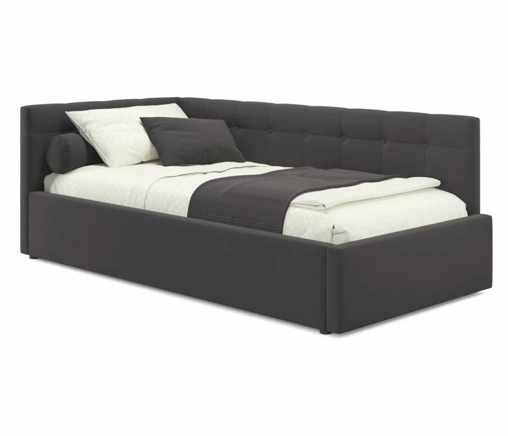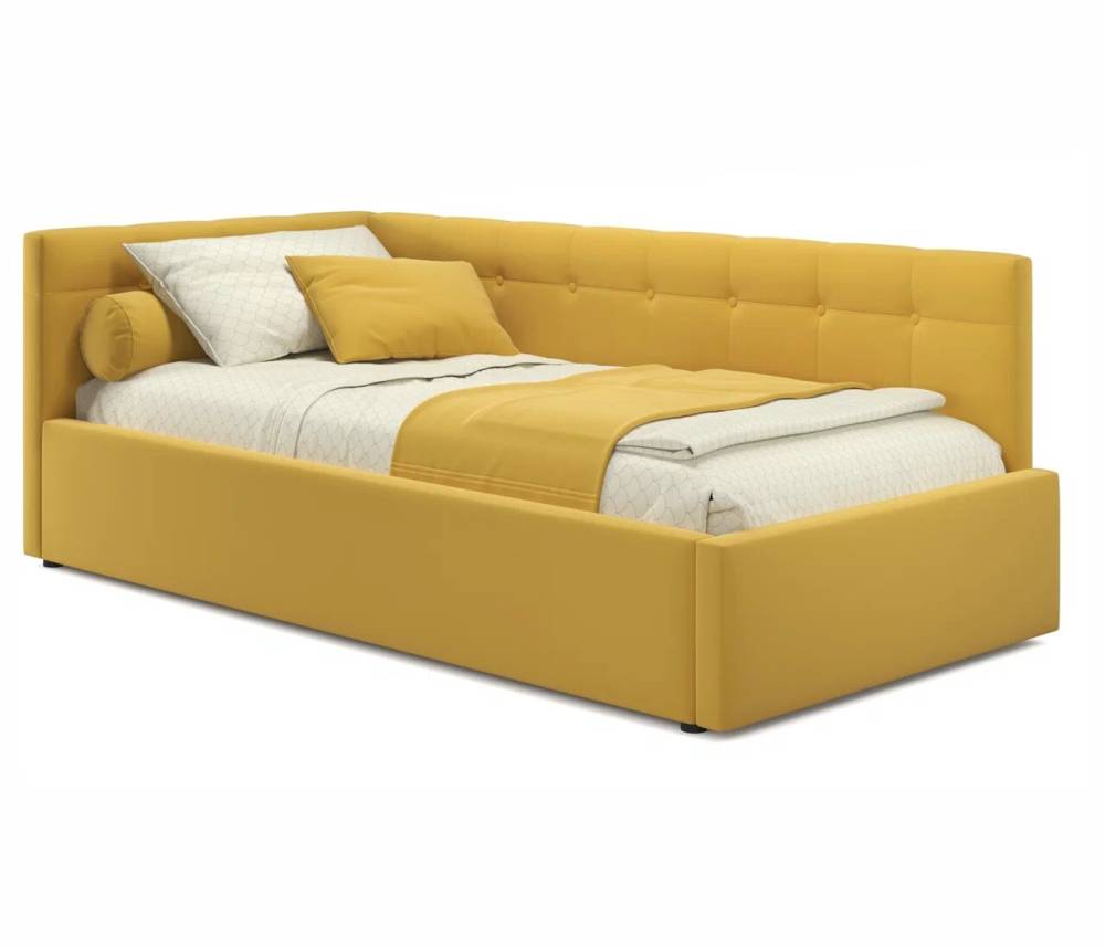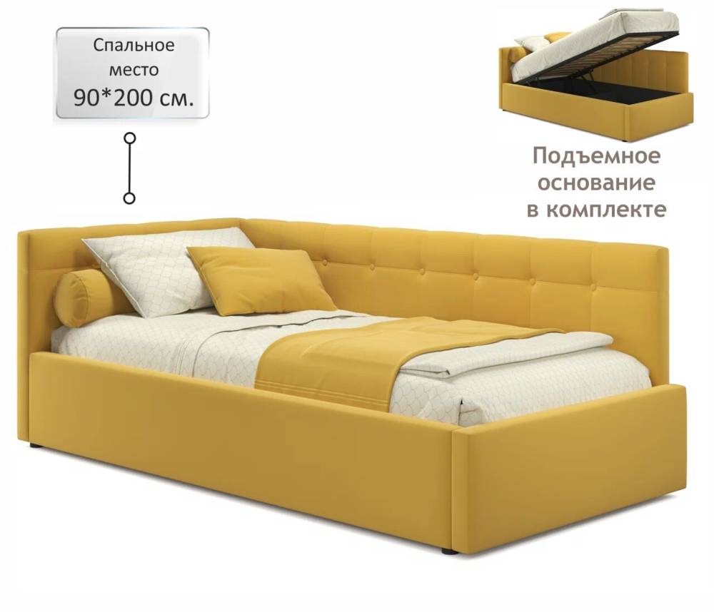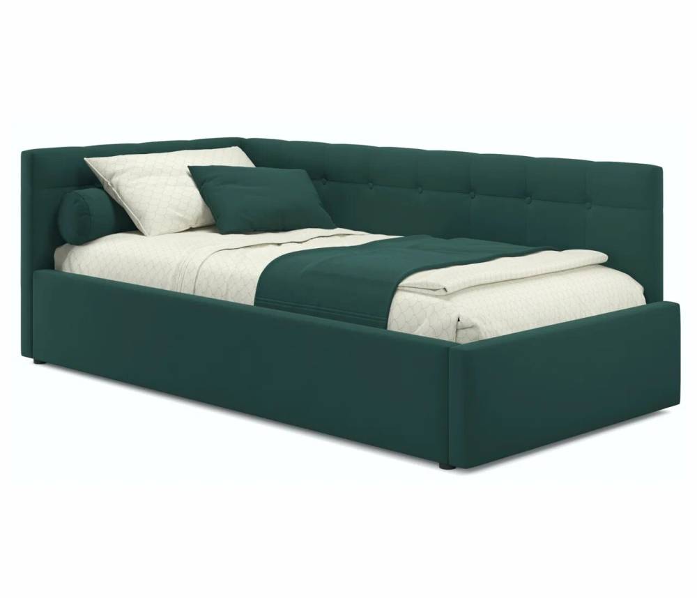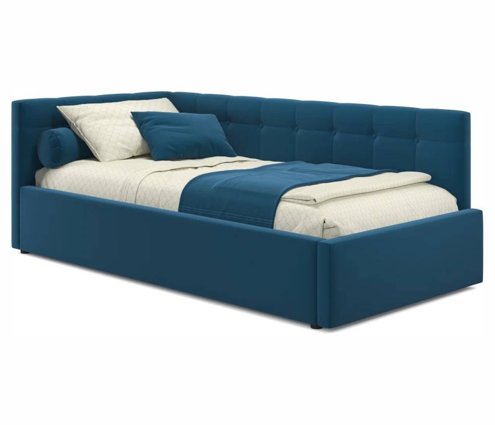 Односпальная кровать-тахта Bonna (Бонна) с подъемным механизмом – уникальный предмет мебели, который совмещает в себе полноценную кровать и диван. Тахта с двумя мягкими спинками выполнена из модной мебельной ткани – велюр. Дорогая ткань велюр придает кровати более величественный благородный вид. Ткань износостойкая, легко чиститься от загрязнений (влажной тряпочкой, любыми средствами, кроме средств с растворителями), практичная, эластичная, устойчивая к ультрафиолету. Рельефные спинки с неглубокими стяжками украшены декоративными пуговицами в тон обивки. Мягкие изголовья позволяет использовать кровать-тахту как мягкий диван для отдыха.