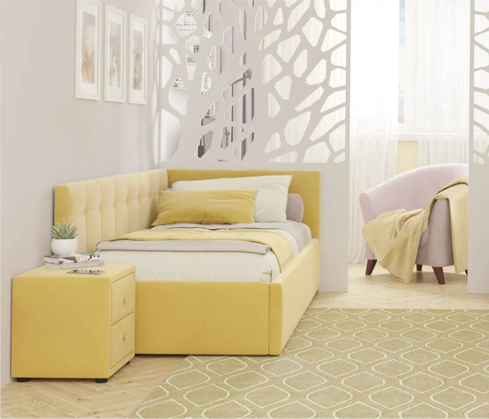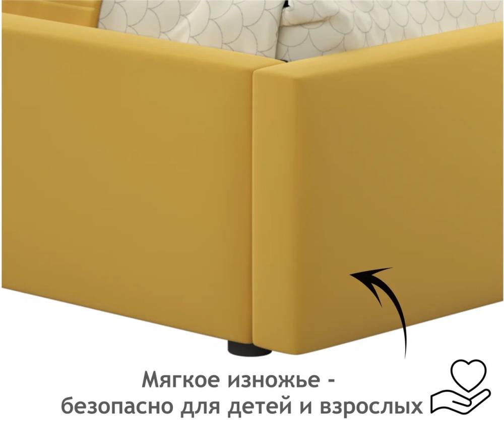 • Интерьерная кровать-тахта оборудована удобным подъемным механизмом. Подъемный механизм с гнутоклееными ортопедическими основаниями поднимает кровать под углом 45 градусов. Безопасное противоударное скругление в ножной спинке является весьма актуальным и взрослым и детям. Кровать тахта с подъемным механизмом создает дополнительное место для хранения постельного белья и вещей не первой необходимости, экономит пространство в спальне.