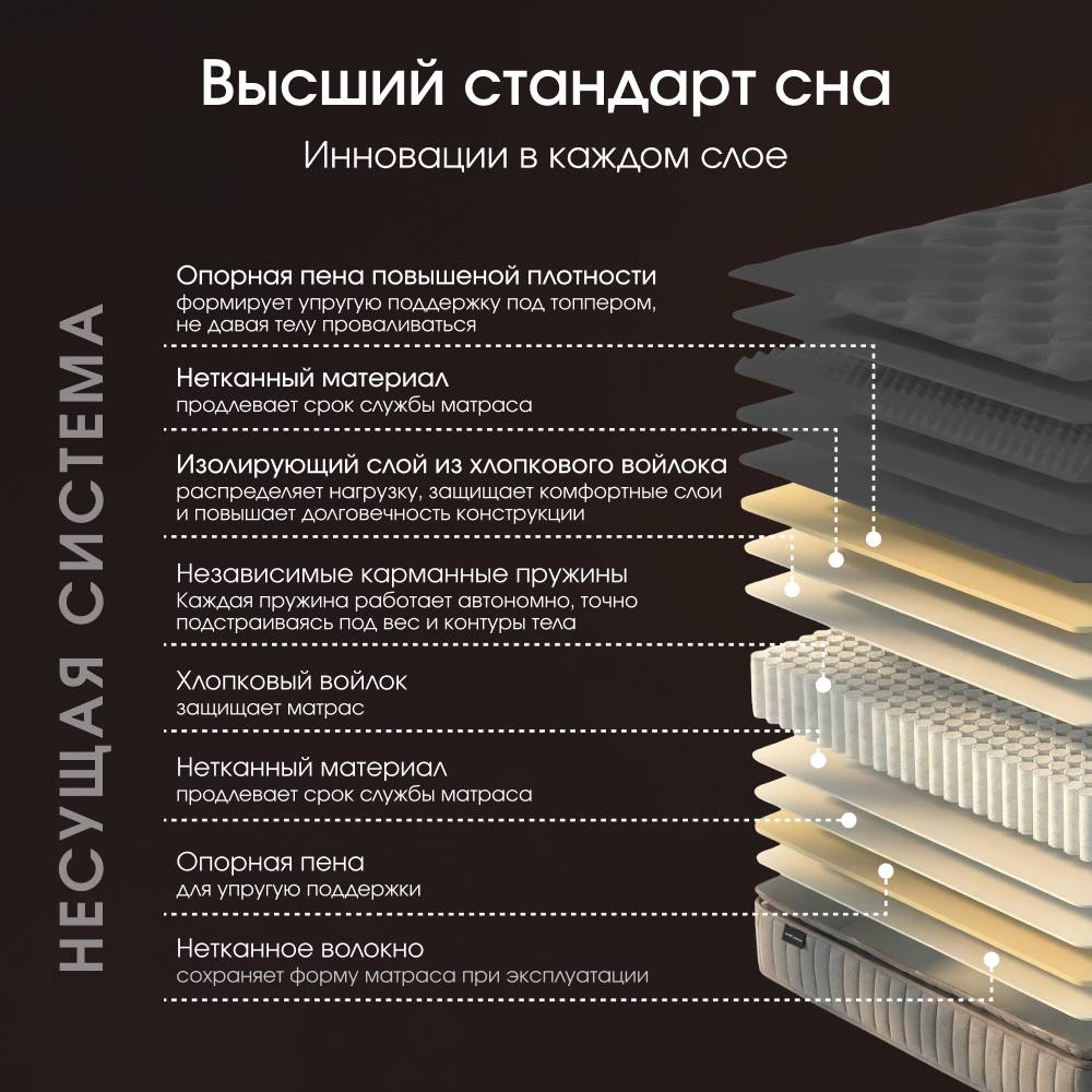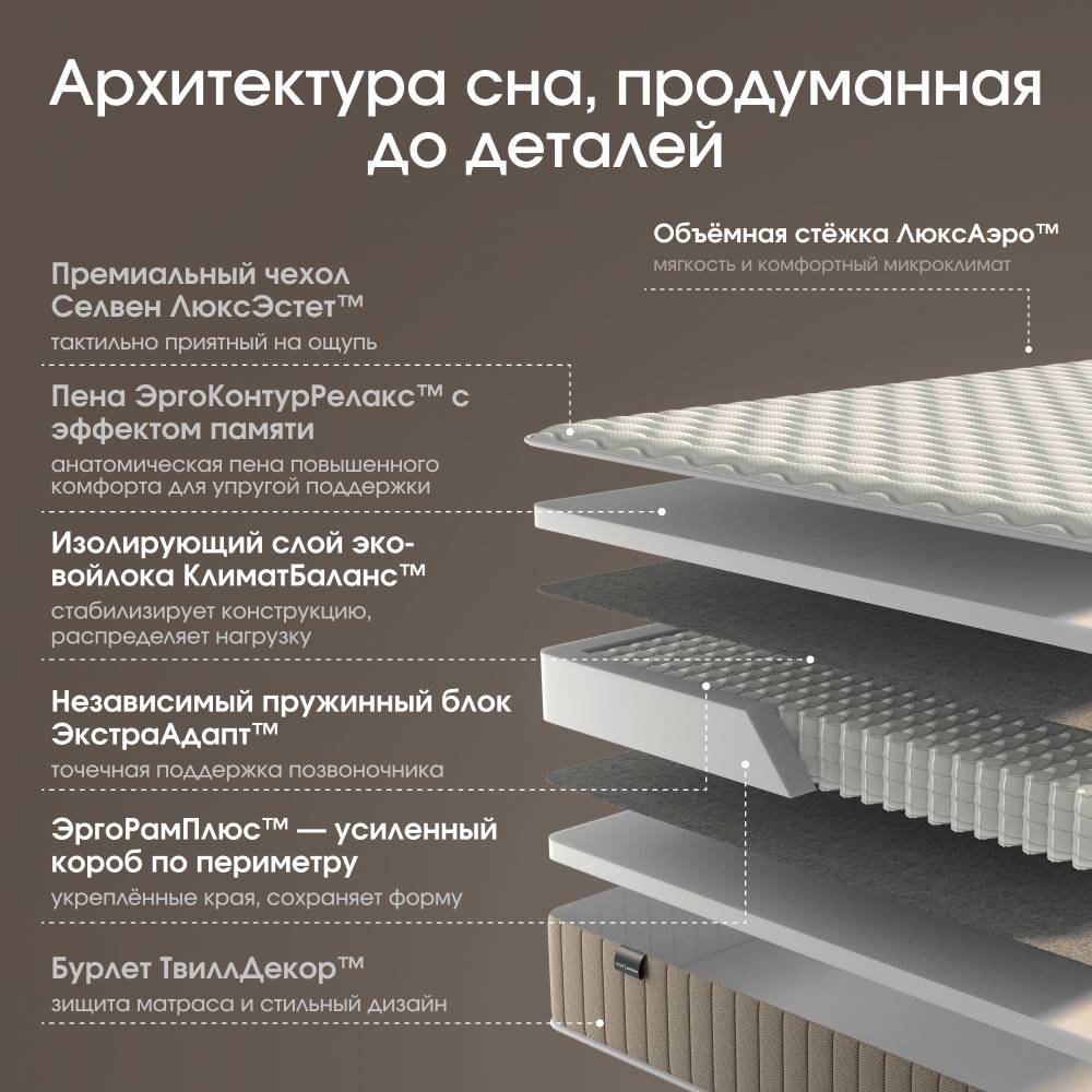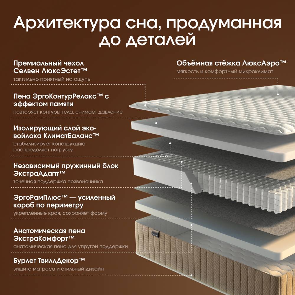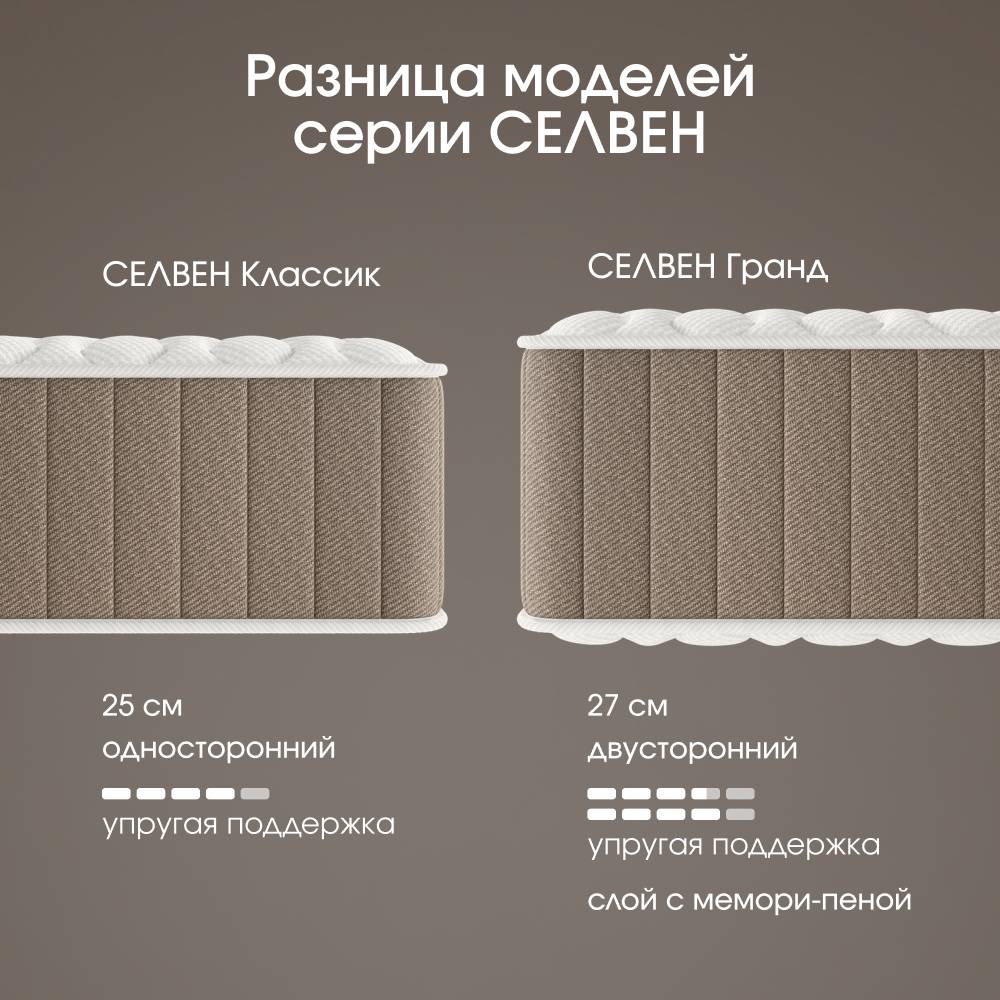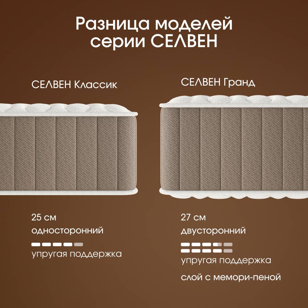 СЕЛВЕН Классик создан для тех, кто ценит стабильность ощущений и хочет “найти своё” — один идеальный сценарий сна без необходимости переворачивать матрас.