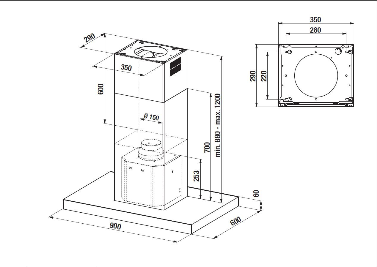Габариты ВхШхГ, мм: 940-1260х900х600