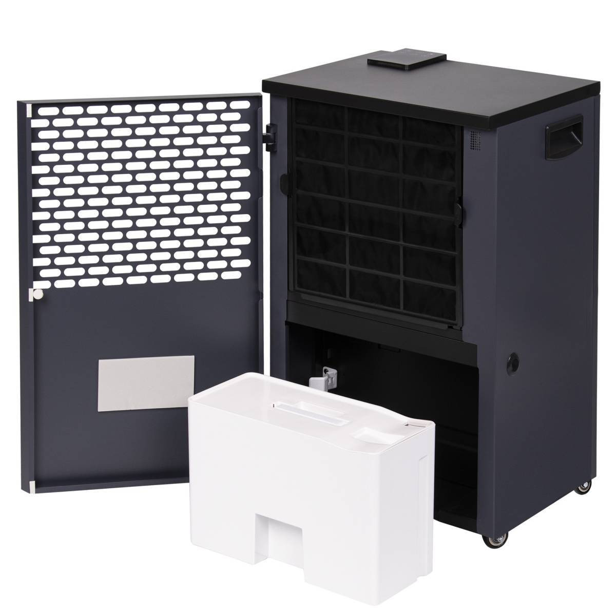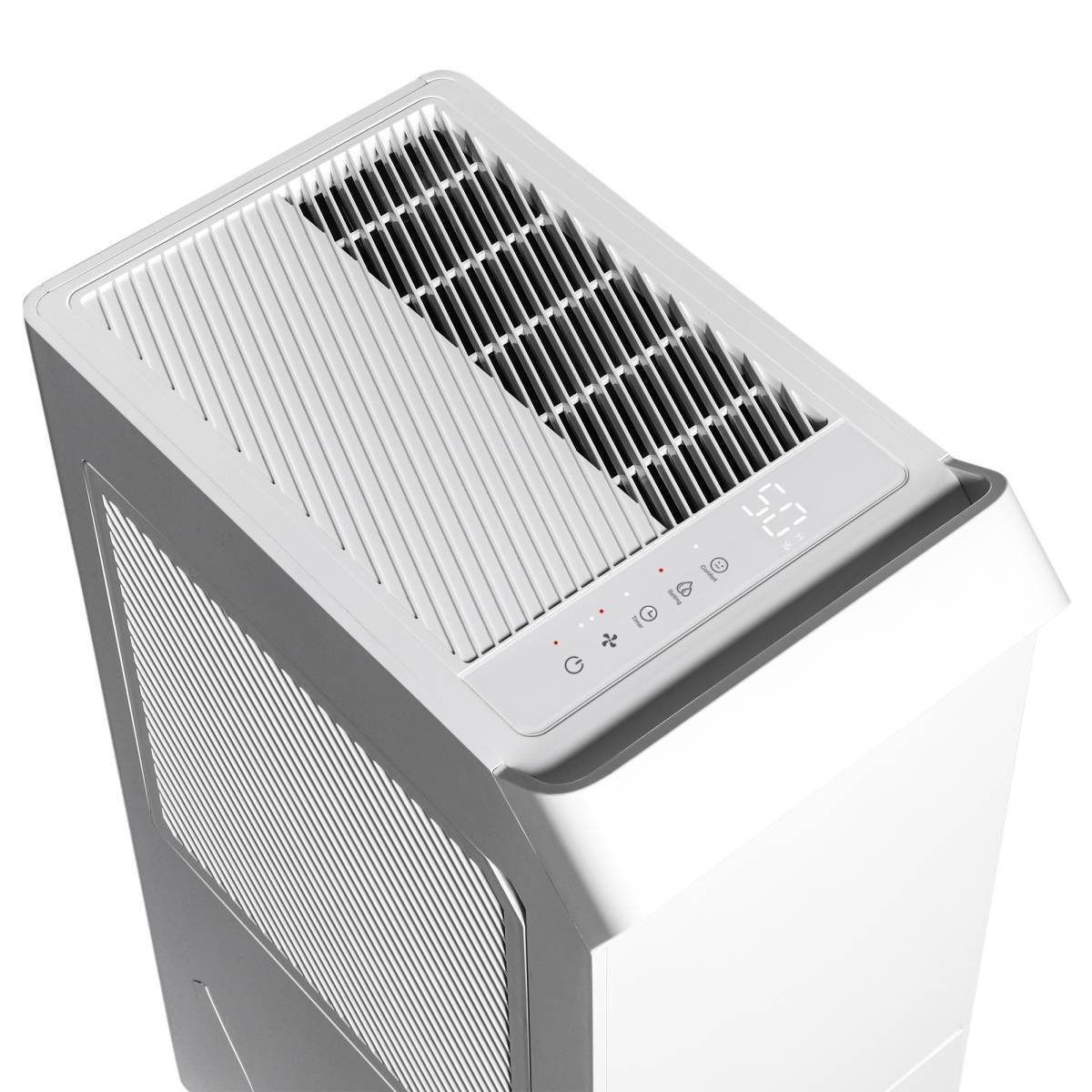 Помимо продвинутого функционала, прибор может похвастаться элегантным строгим дизайном. Яркий LED-индикатор на фронтальной панели меняет цвет в зависимости от текущего уровня влажности в помещении. Эргономичная ручка и шасси обеспечивают легкое перемещение прибора между комнатами.