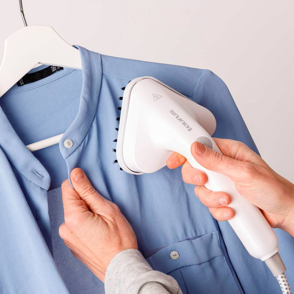 Принадлежности: грубая щетка, насадка для деликатных тканей, 2 фильтра против накипи