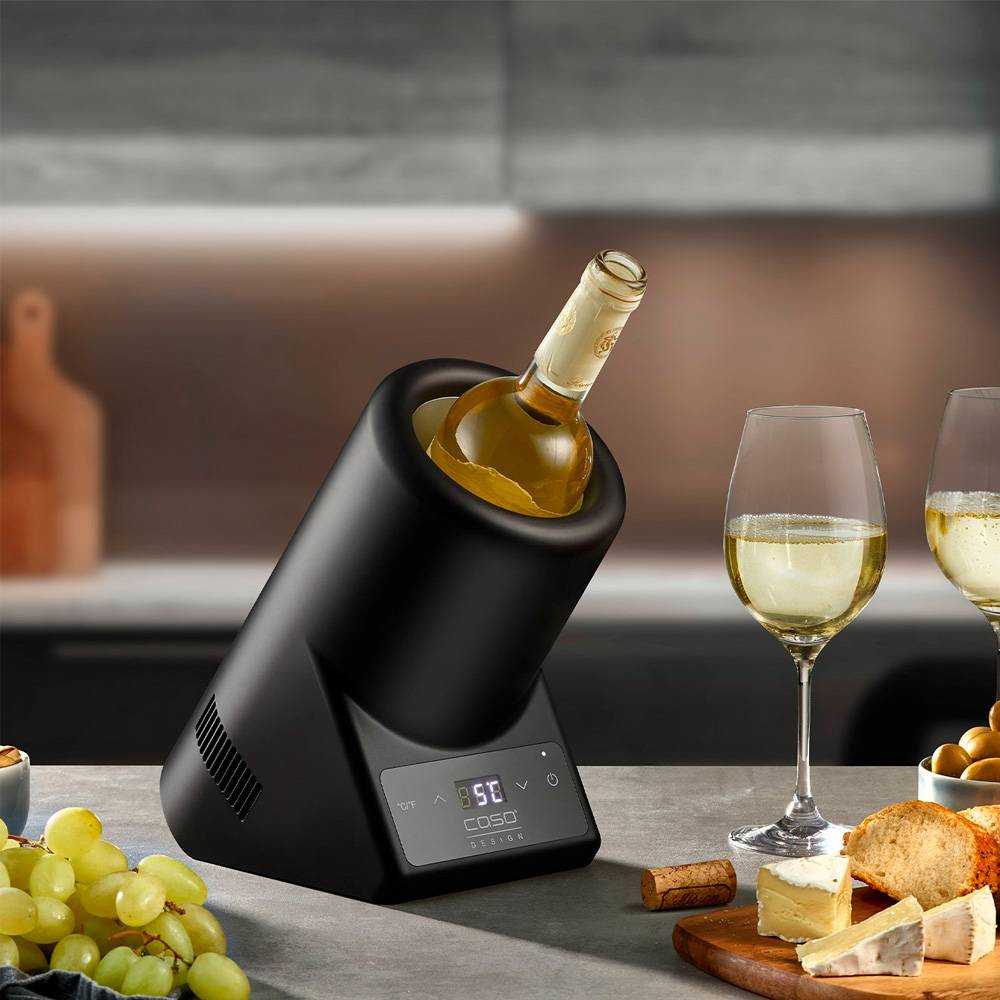 Охладитель для вина CASO VinoCase Black использует возможности термоэлектрического охлаждения, благодаря чему напиток доводится до нужной температуры максимально быстро, охлаждаясь при этом равномерно