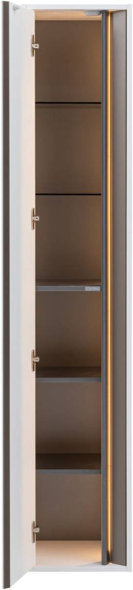 Детали фасада и декоративного профиля имеют фрезеровку и наклон 45 градусов, что делает открывание навесного шкафа для ванной очень комфортным.