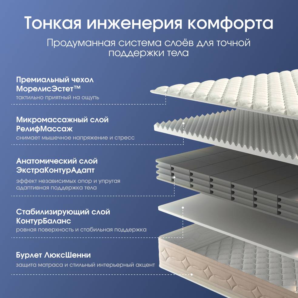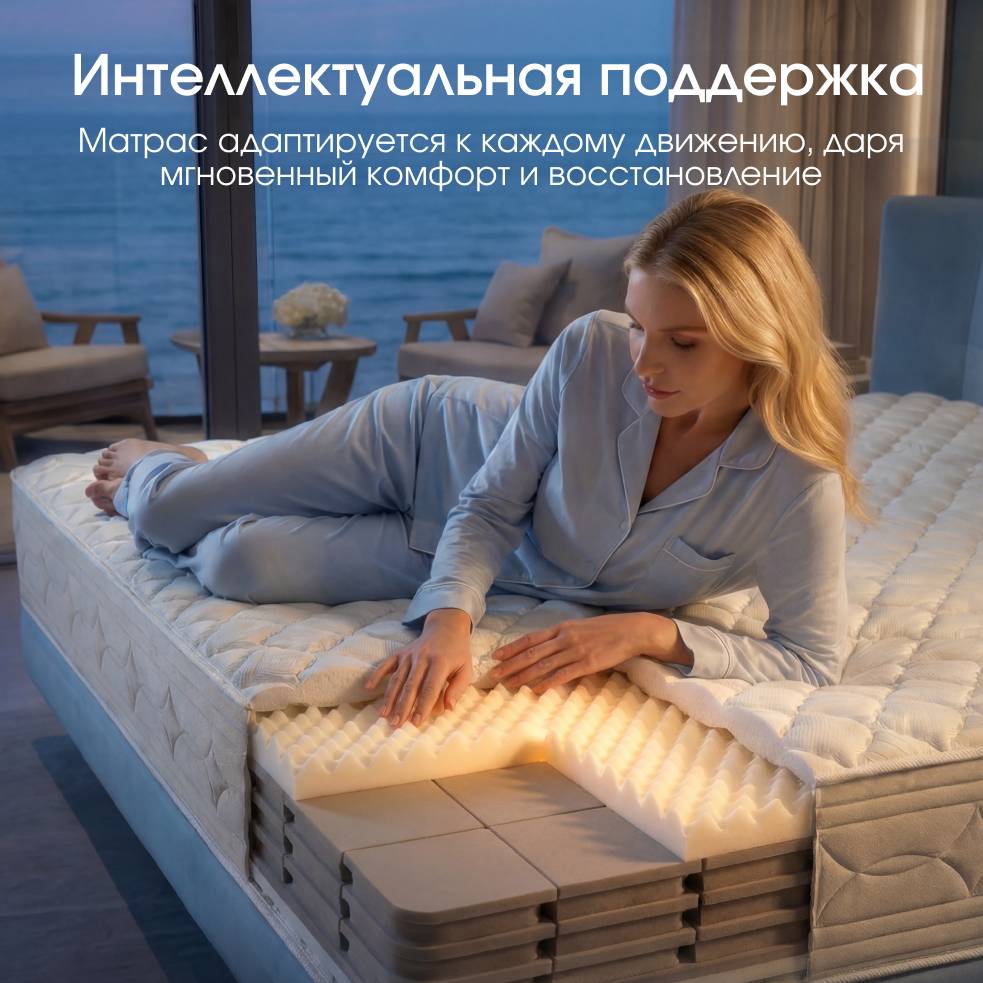 — Матрас адаптируется к каждому движению, даря мгновенный комфорт и восстановление