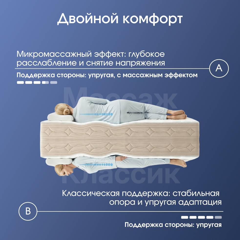 — Массажный слой мягко расслабляет мышцы и улучшает качество сна