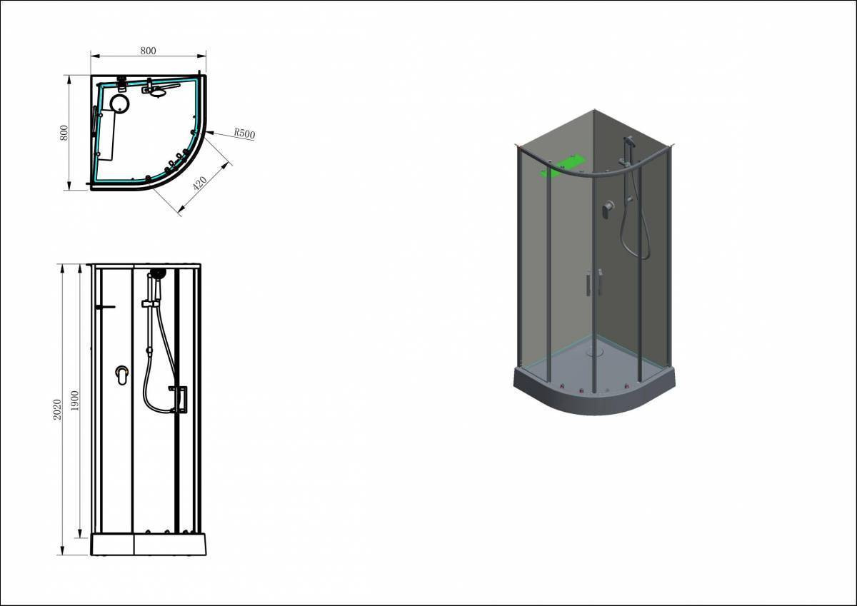 Поддон 1/4 800х800-бел. Aquanet Passion EVO (фурн.-черн./напр.проф.-черн./слив-хром №1/3)