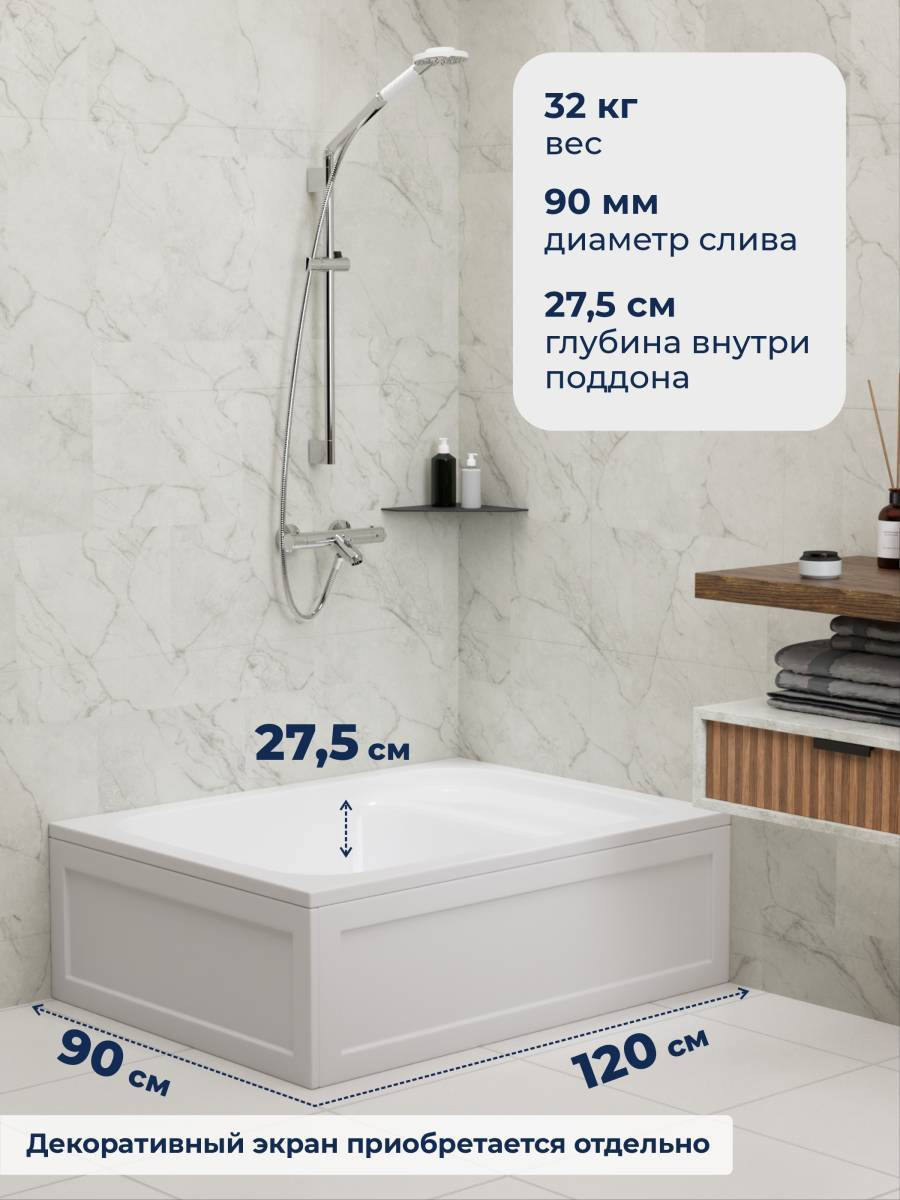 Поддон для душа акриловый 120*90 является одним из неотъемлемых элементов душевой зоны. Душевой поддон акриловый широко используется в домах, квартирах, гостиницах, банях и бассейнах.