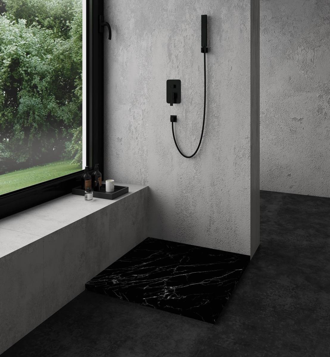 В серии душевых поддонов Stone Tray новинка - поддон в самом актуальном дизайне под натуральный чёрный мрамор.