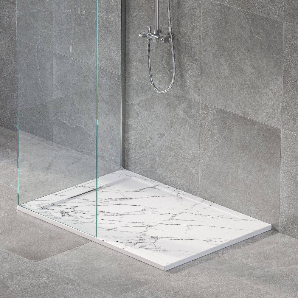 В серии душевых поддонов Stone Tray новинка - поддон в самом актуальном дизайне под натуральный белый мрамор.