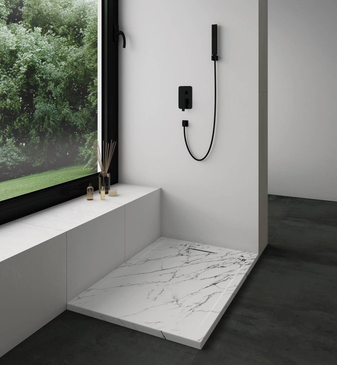 В серии душевых поддонов Stone Tray новинка - поддон в самом актуальном дизайне под натуральный белый мрамор.