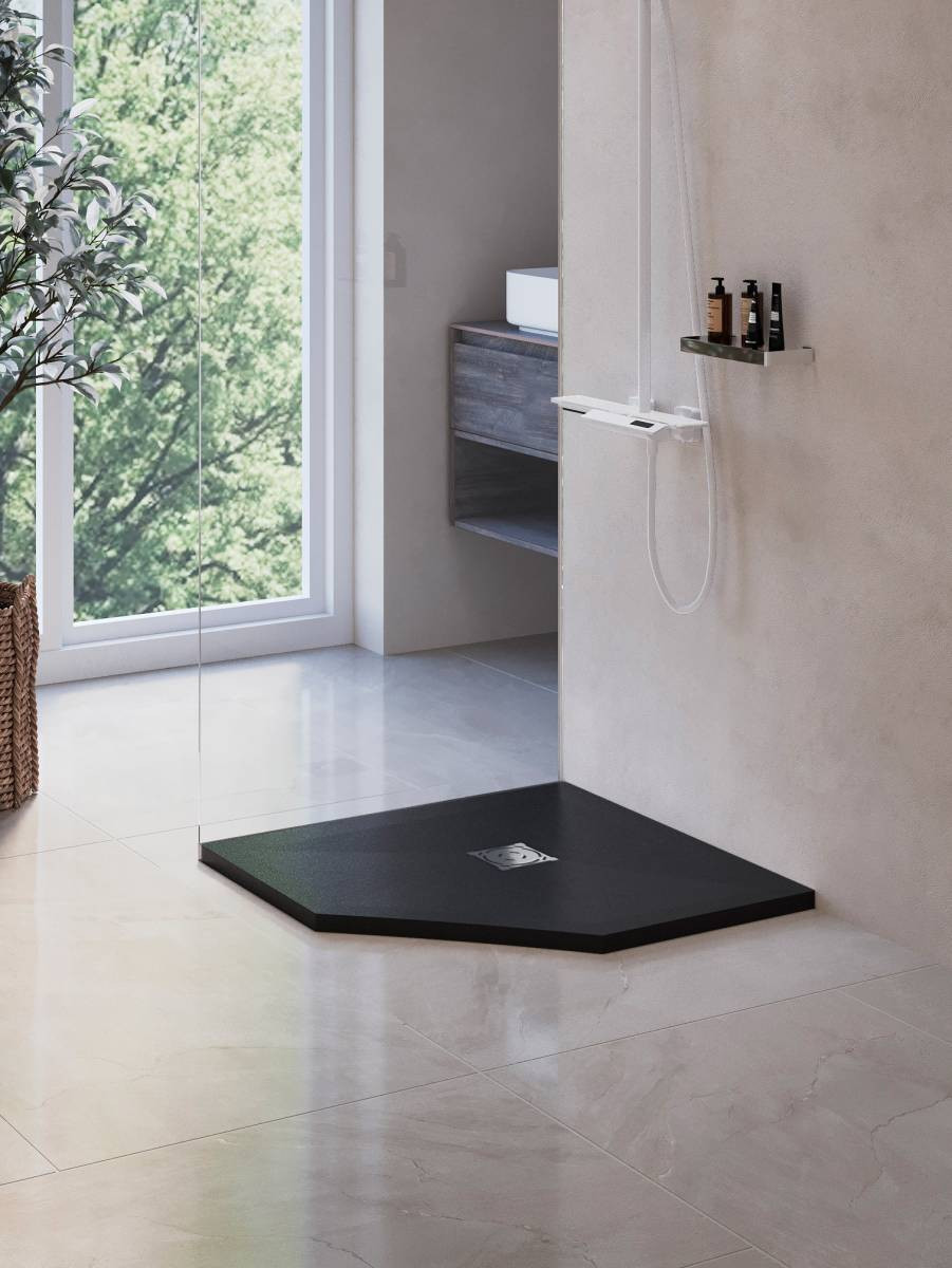 Поддон из искусственного камня имеет рельефную структуру, поверхность не ребристая, она безопасная, что обеспечивает для всех членов семьи комфортное использование, в сочетании с низкой теплопроводностью материала и дарит ощущения нагретого солнцем камня под вашими ступнями.
