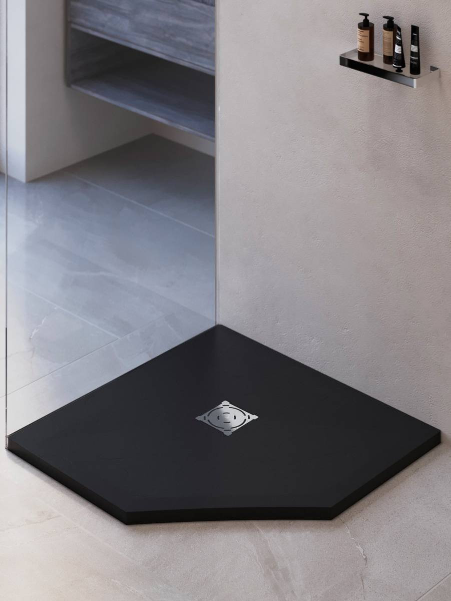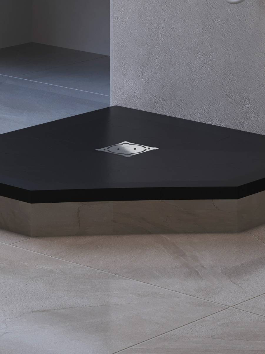 Дополнительно к поддону приобретаются декоративные экраны, чтобы закрыть сливную систему.