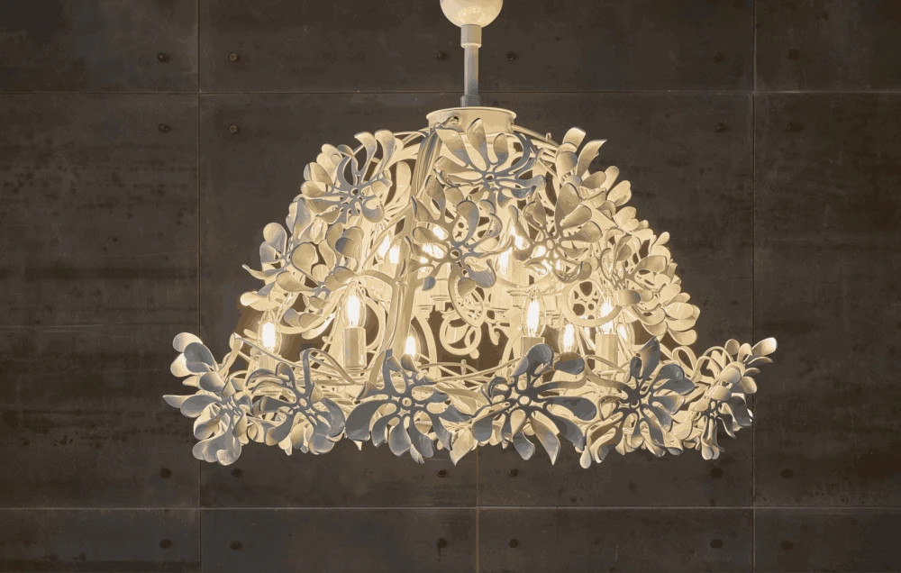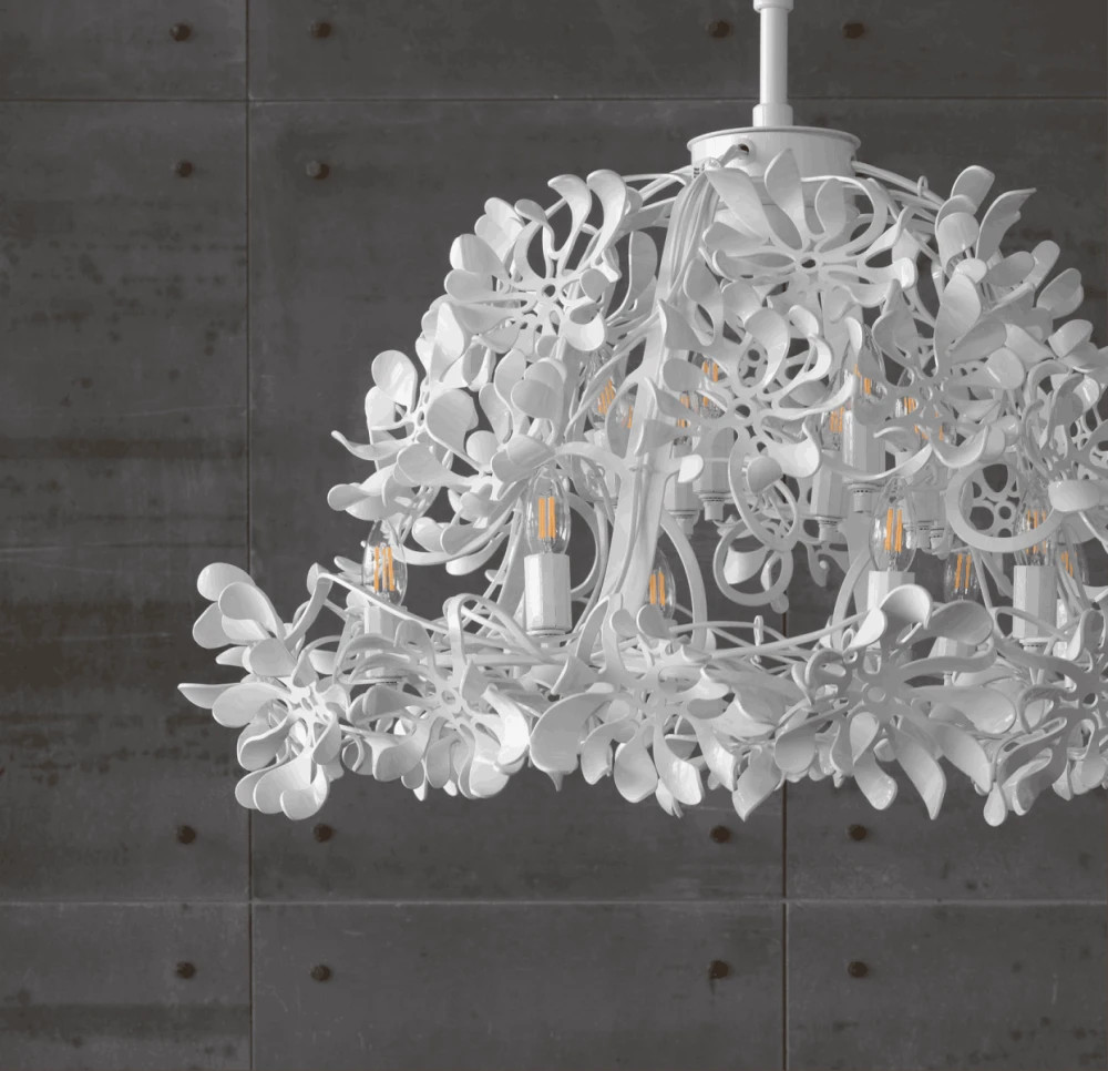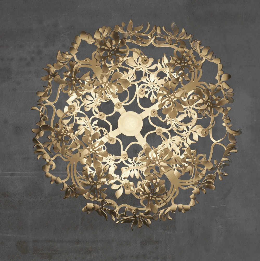 Подвесная люстра с формой, напоминающей юбку свадебного платья. Изящные металлические элементы струятся вниз мягкими волнами, словно ткань, пойманная в движении. Лёгкая, но выразительная, она создаёт в пространстве ощущение торжественности, уравновешенности и света с настроением. Возможна индивидуальная отделка и масштаб под проект.