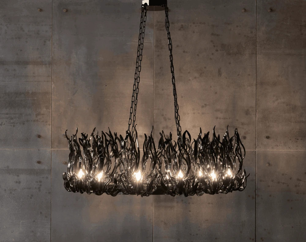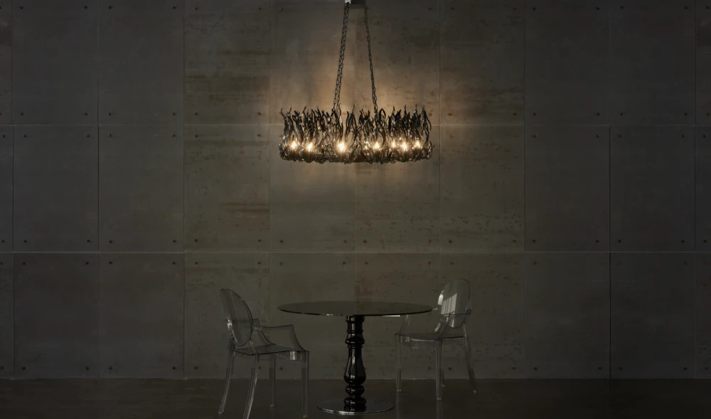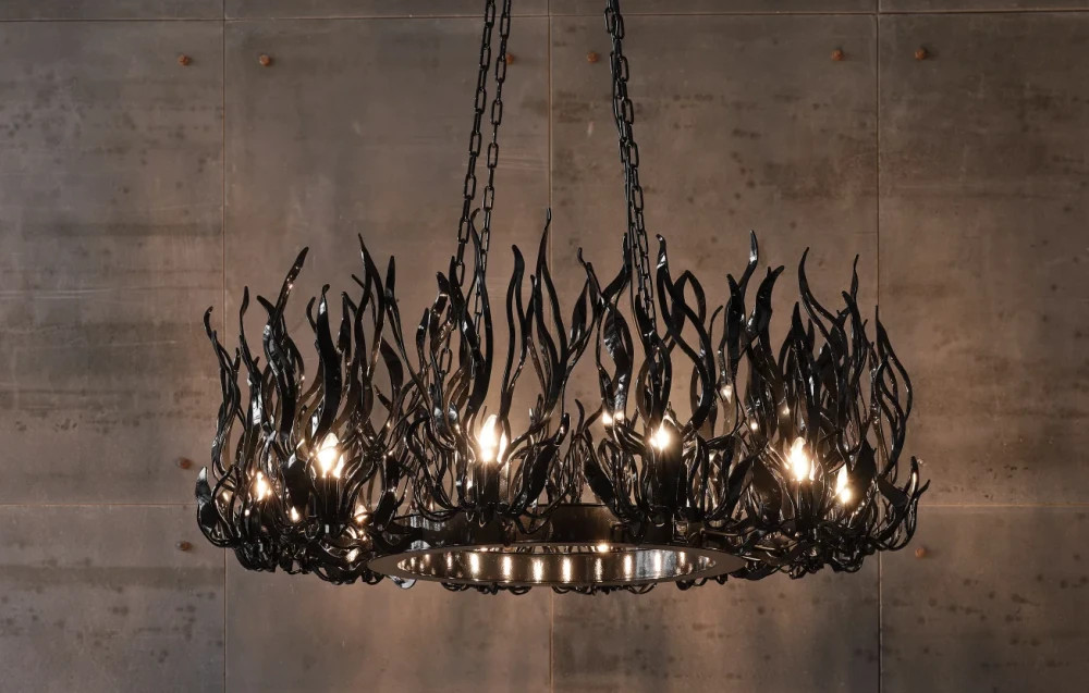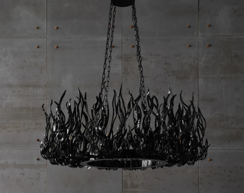 Подвесная люстра, вдохновлённая формой королевского украшения. Как и настоящая тиара, этот светильник сочетает изящество и структуру: изогнутые металлические элементы образуют композицию, напоминающую сияющий обод с драгоценными акцентами. Линии направлены вверх, создавая ощущение раскрытия и лёгкой торжественности. TIARA работает как световая корона в интерьере — подчёркивает центр, собирает внимание, придаёт пространству ритм и статус.
