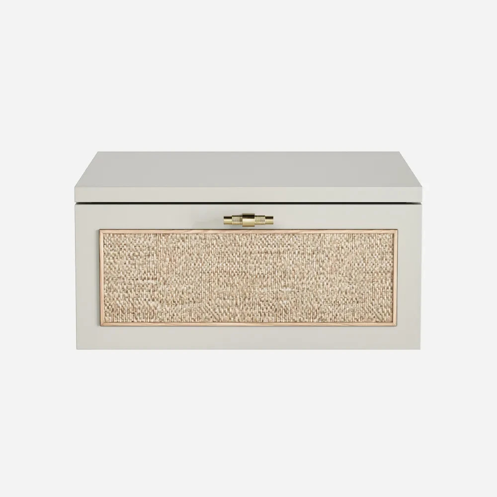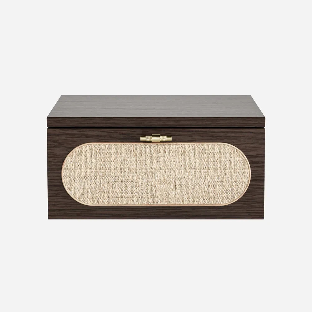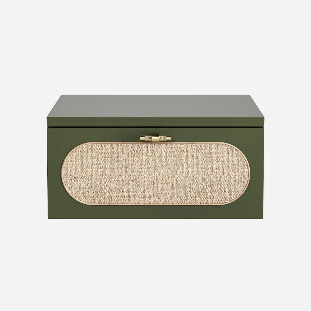 Подвесная прикроватная тумба с ротангом tioTeo Vishera светло-серого цвета выполнена из МДФ, покрытого матовой итальянской эмалью. В основе дизайна коллекции – оригинальный фасадный декор, выполненный из натурального ротангового полотна.