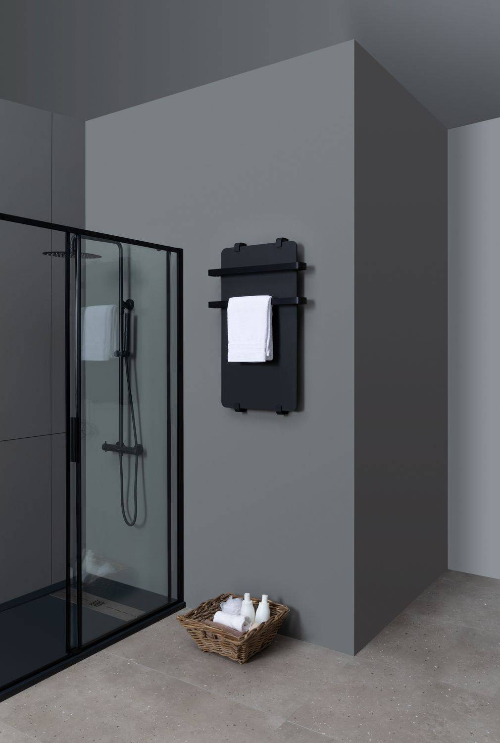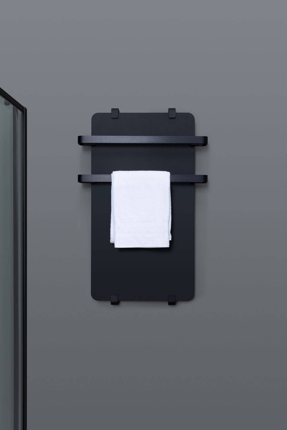 Полотенцесушитель электрический Allen Brau Infinity 80x44 с рейлингом 2.0 и креплением, черный матовый