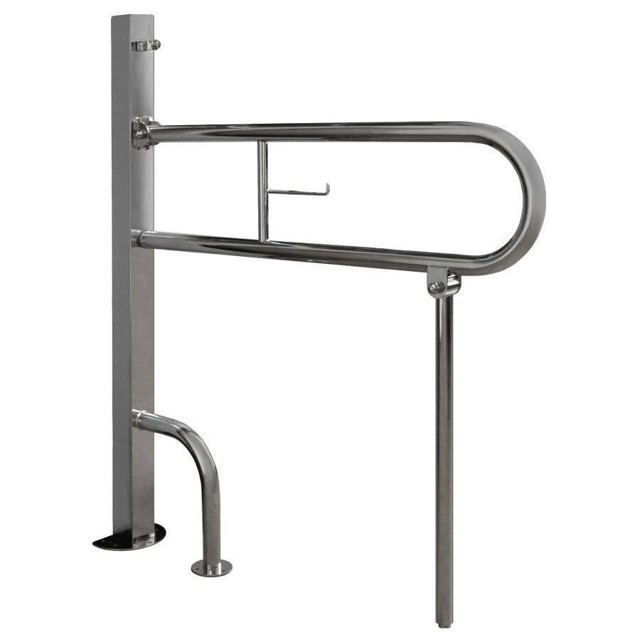 Поручень для унитаза, напольный, откидной | для инвалидов (хром). На стойке, с дополнительной опорой и держателем туалетной бумаги, гарантия 5 лет, Россия