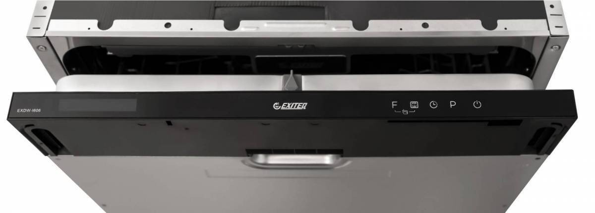 Панель управления располагается на торце двери. В модели EXDW-I606 имеется обширный набор программ: эконом, интенсивная, быстрая и др. режимы. Выбранная программа отображается на дисплее. Для удобства пользователя в программе есть опция отсроченного старта.