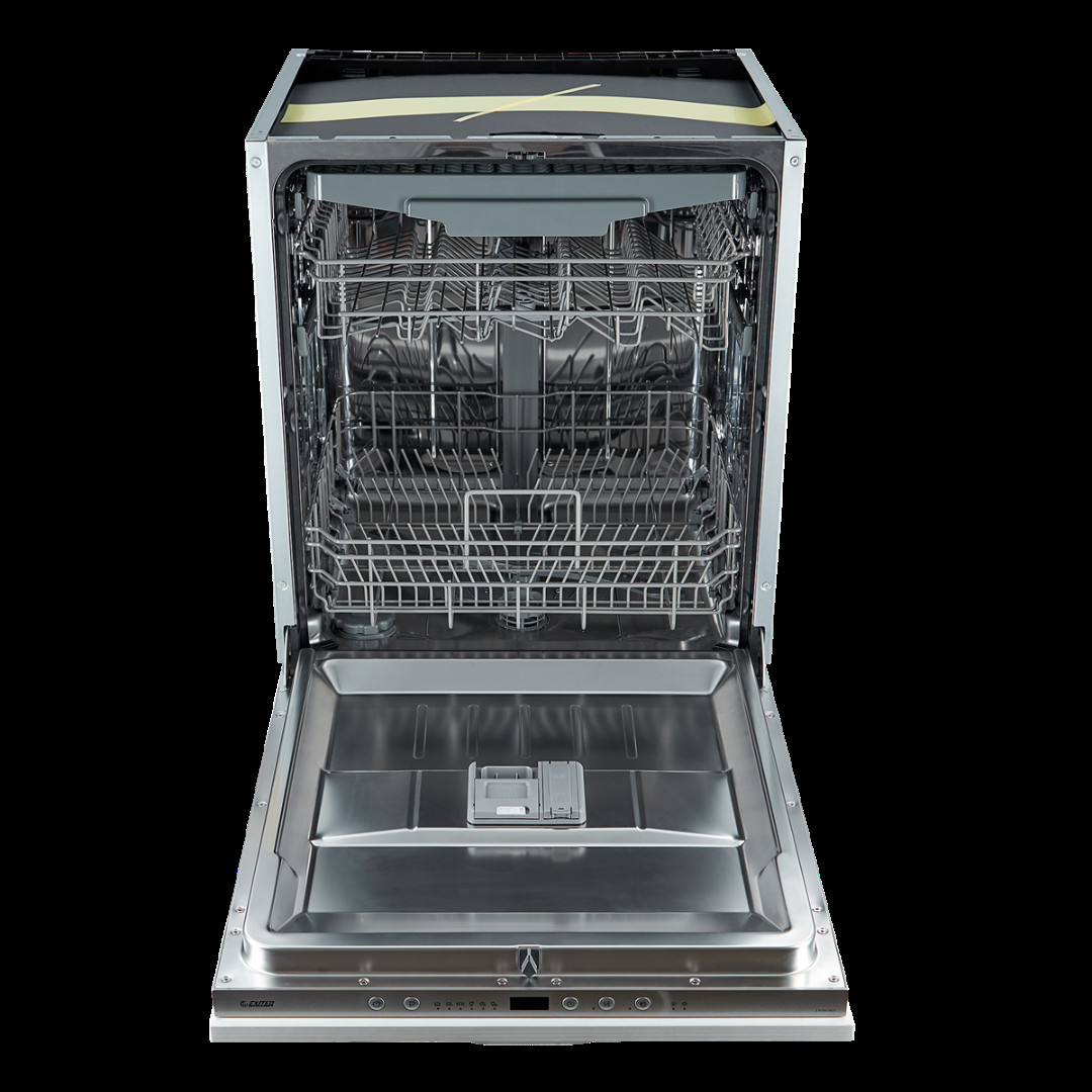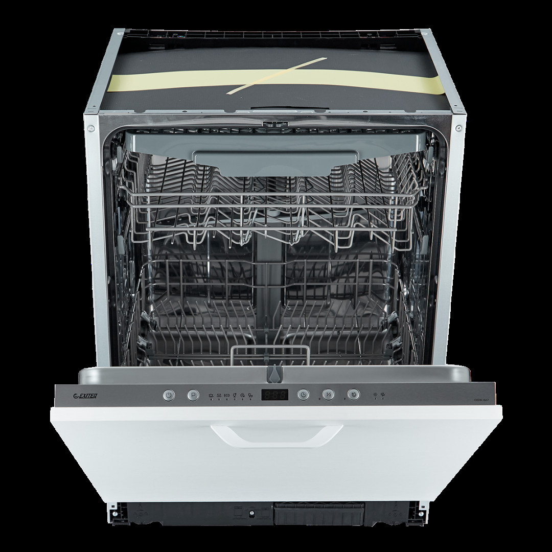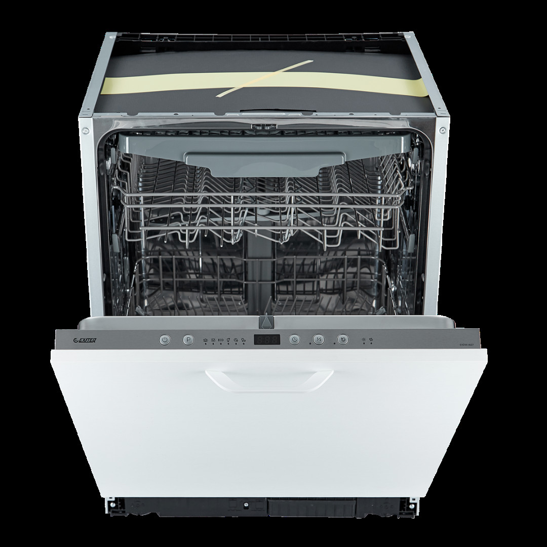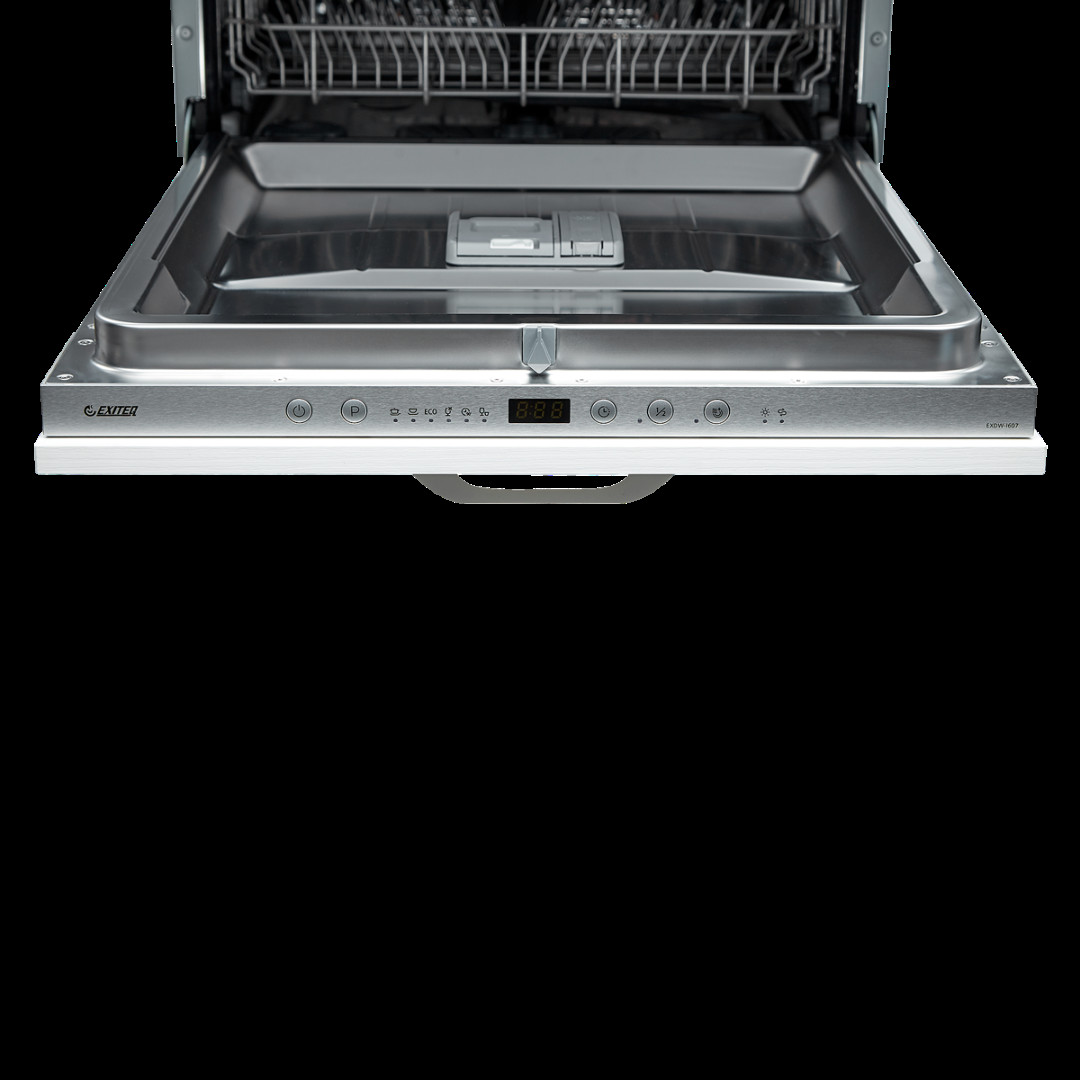 EXDW-I607 – это полновстраиваемая посудомоечная машина: она полностью прячется под столешницу и закрывается спереди навесным фасадом. Посудомоечная машина подключается к холодной воде, нагрев воды производится в нутри устройства. Благодаря этому владелец техники не зависит от сезонного отключения горячей воды.