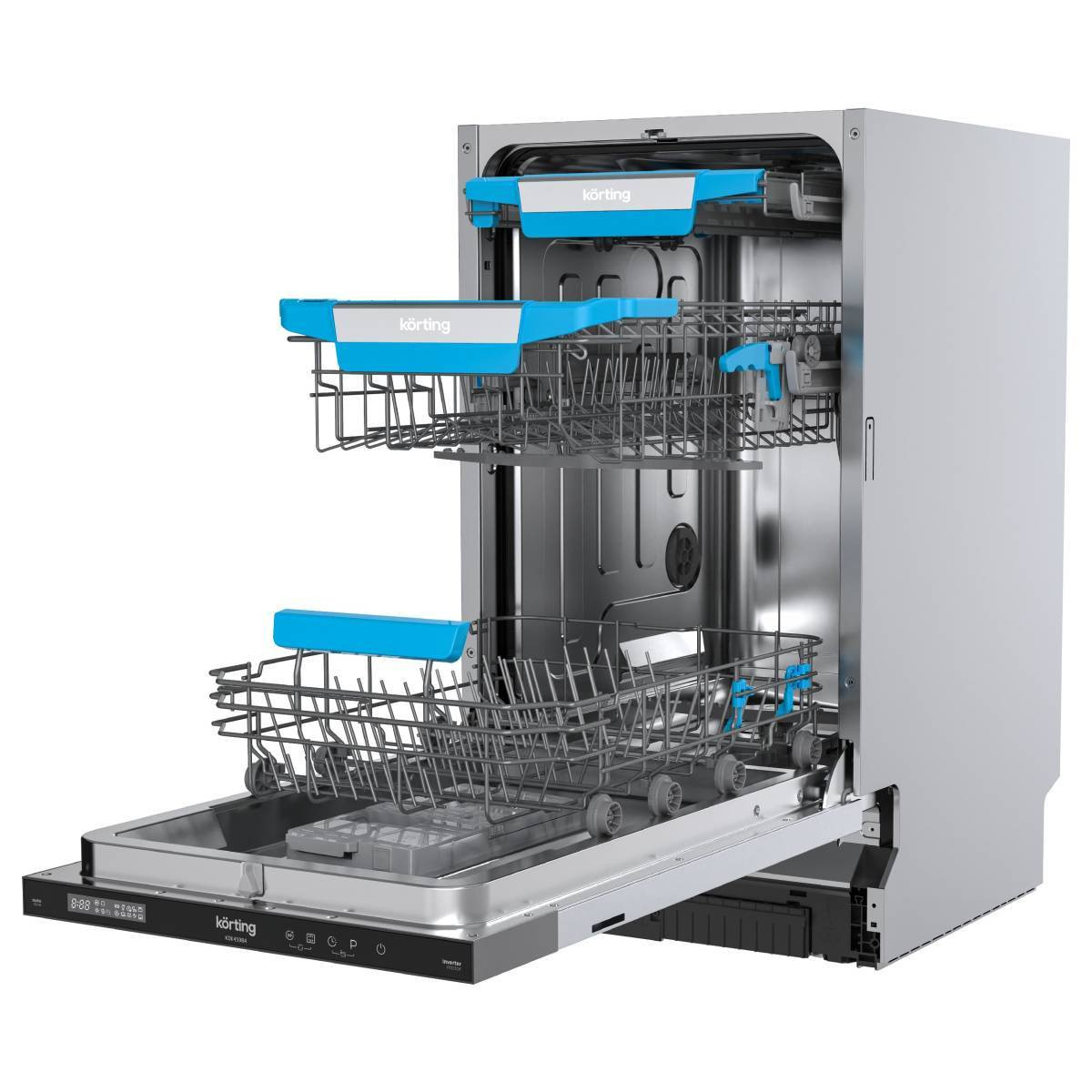 Система защиты от протечек «AquaControl» обеспечивает автоматический контроль количества воды в посудомоечных машинах Korting. В случае перелива или протечек включается специальное устройство «AquaStop», которое блокирует подачу воды. Таким образом, от протечек застрахованы и вы, и ваши соседи.