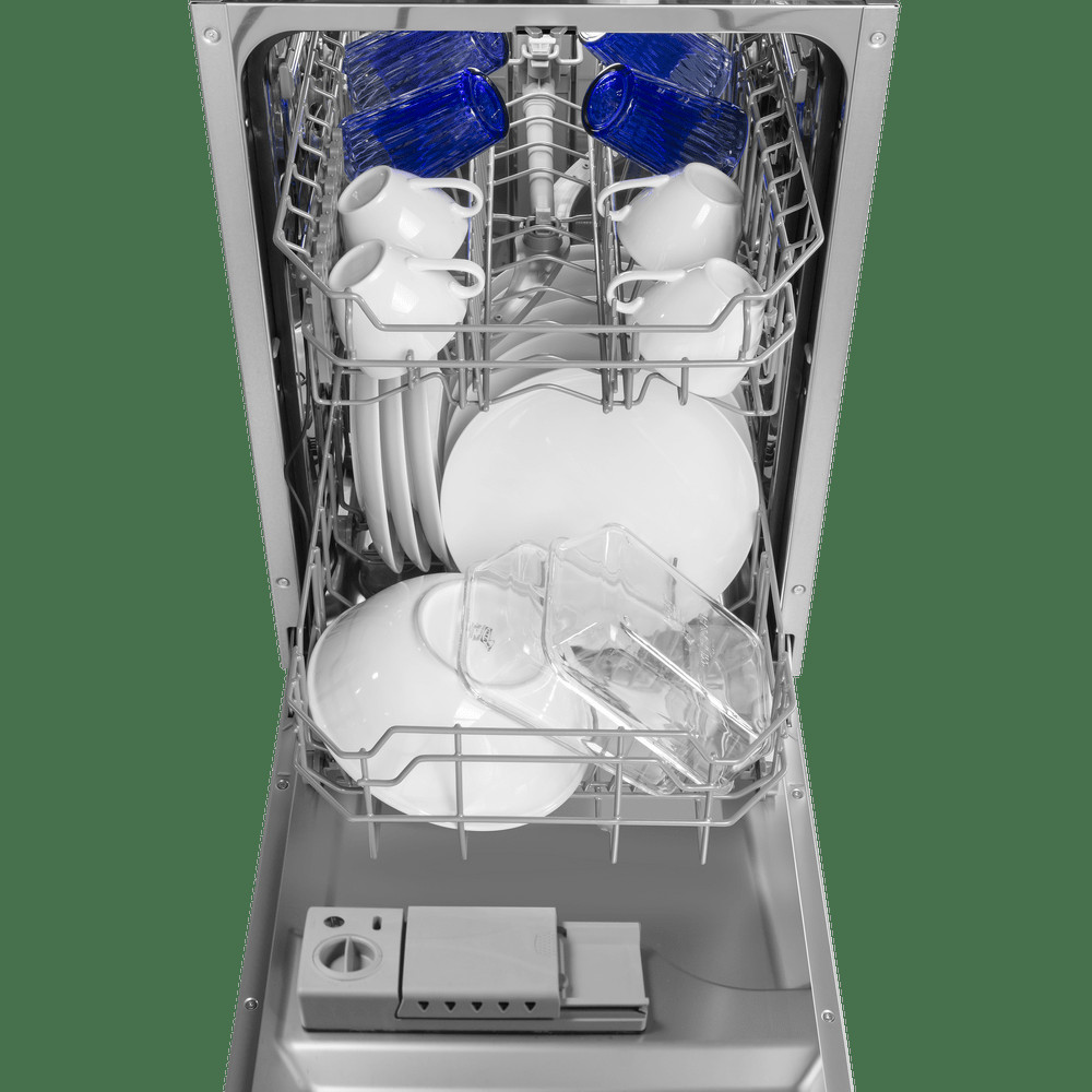 В посудомоечную машину помещается много посуды. Можно накопить её в течение дня или помыть сразу всё после семейного торжества или вечеринки с друзьями. Вместимость — до 9 комплектов посуды.