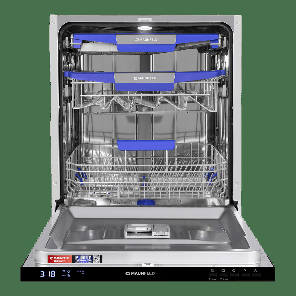 Посудомоечная машина MAUNFELD MLP60230 Light Beam Wi-Fi оснащена дисплеем и удобной системой управления. Благодаря функции Wi Fi, возможен удаленный запуск машины через приложение на смартфоне. Также есть индикаторы наличия ополаскивателя, соли и времени до окончания программы. Машина имеет класс энергопотребления A+++, что говорит о ее высокой энергоэффективности. Уровень шума составляет всего 47 дБ, что делает ее одной из самых тихих моделей на рынке. Внутренний резервуар выполнен из нержавеющей стали, что обеспечивает его долговечность и устойчивость к коррозии.
