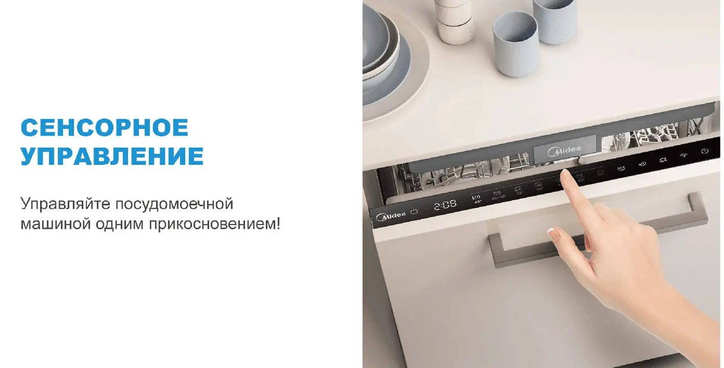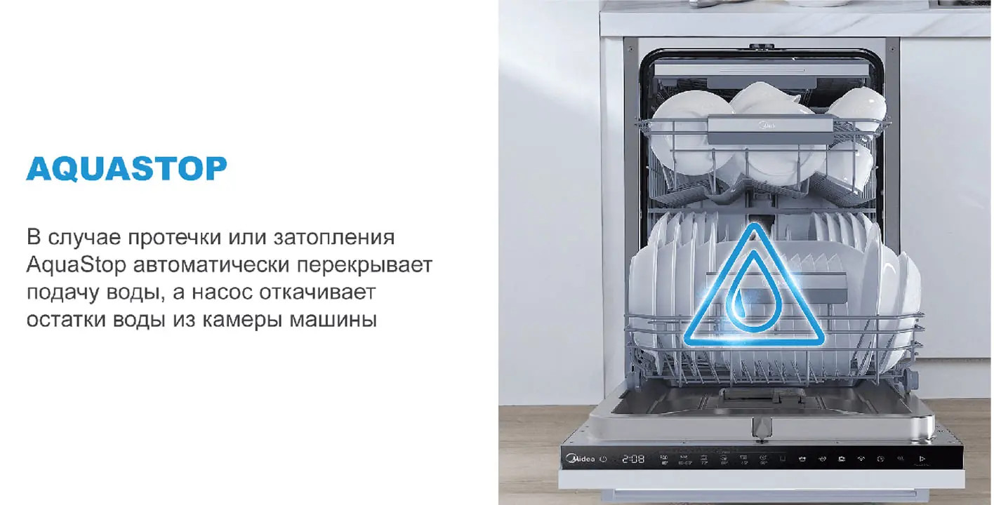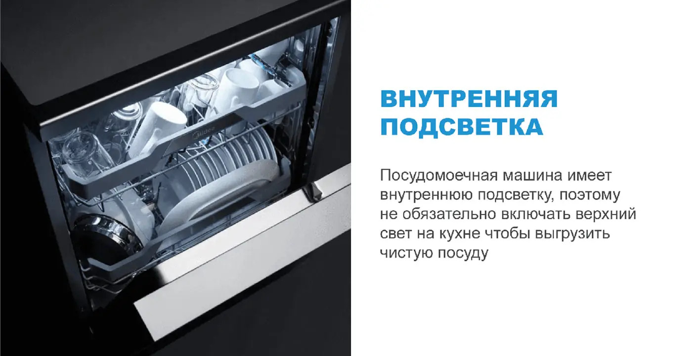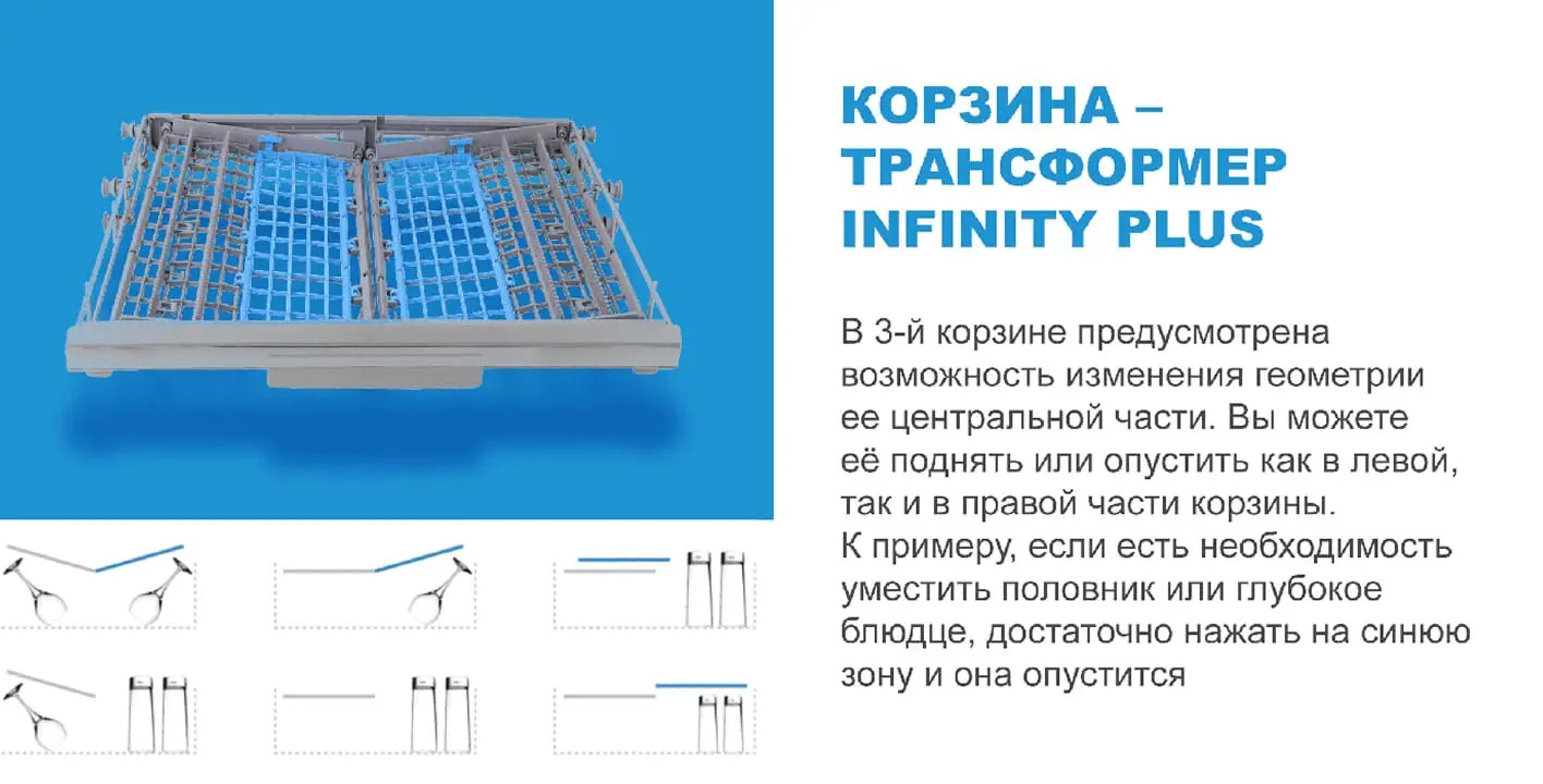 Опции: «Половинная загрузка», «Сушка +», «Мытьё +», «Экспресс», «Эко +»