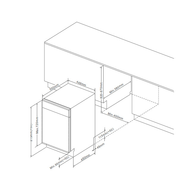 Размеры ниши для встраивания (мм): В 820-870 x Ш 450 x Г 580