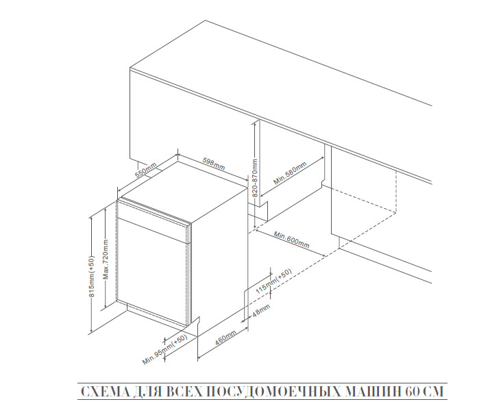 Размеры ниши для встраивания (мм): В 820-870 x Ш 600 x Г 580