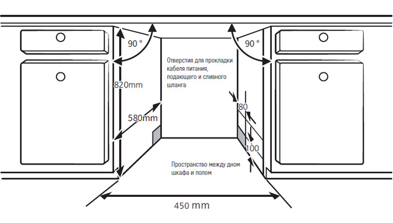 Размер ниши для встраивания (ВхШхГ), мм: 820х450х580