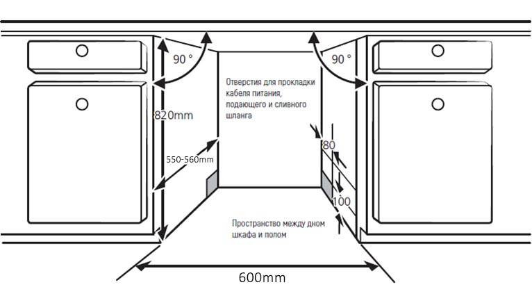 Размер ниши для встраивания (ВхШхГ), мм 820×600×550