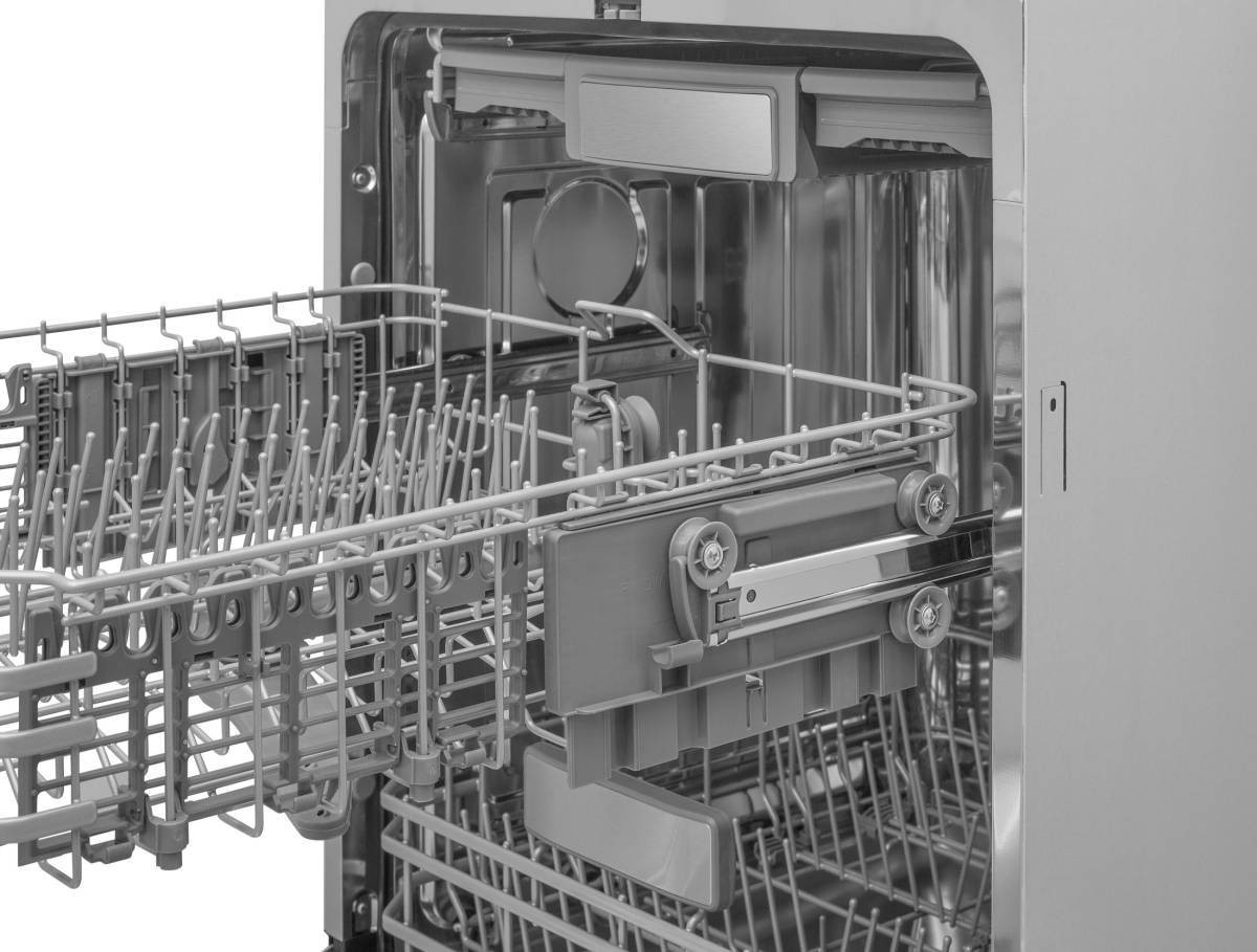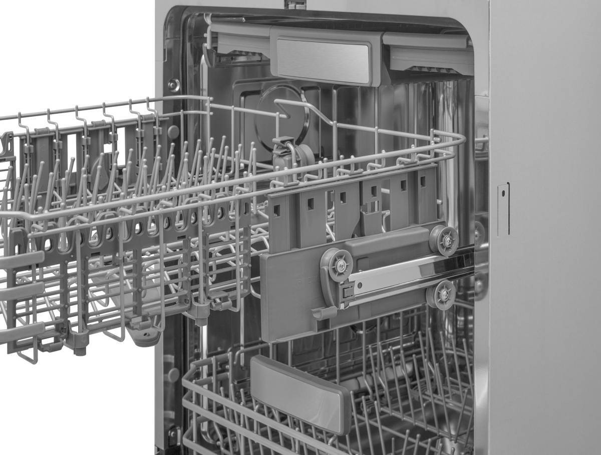Верхний лоток для столовых приборов состоит из 3 подвижных частей: 3 съемных блока лотка позволяют регулировать высоту и освободить пространство для высоких или крупных предметов.