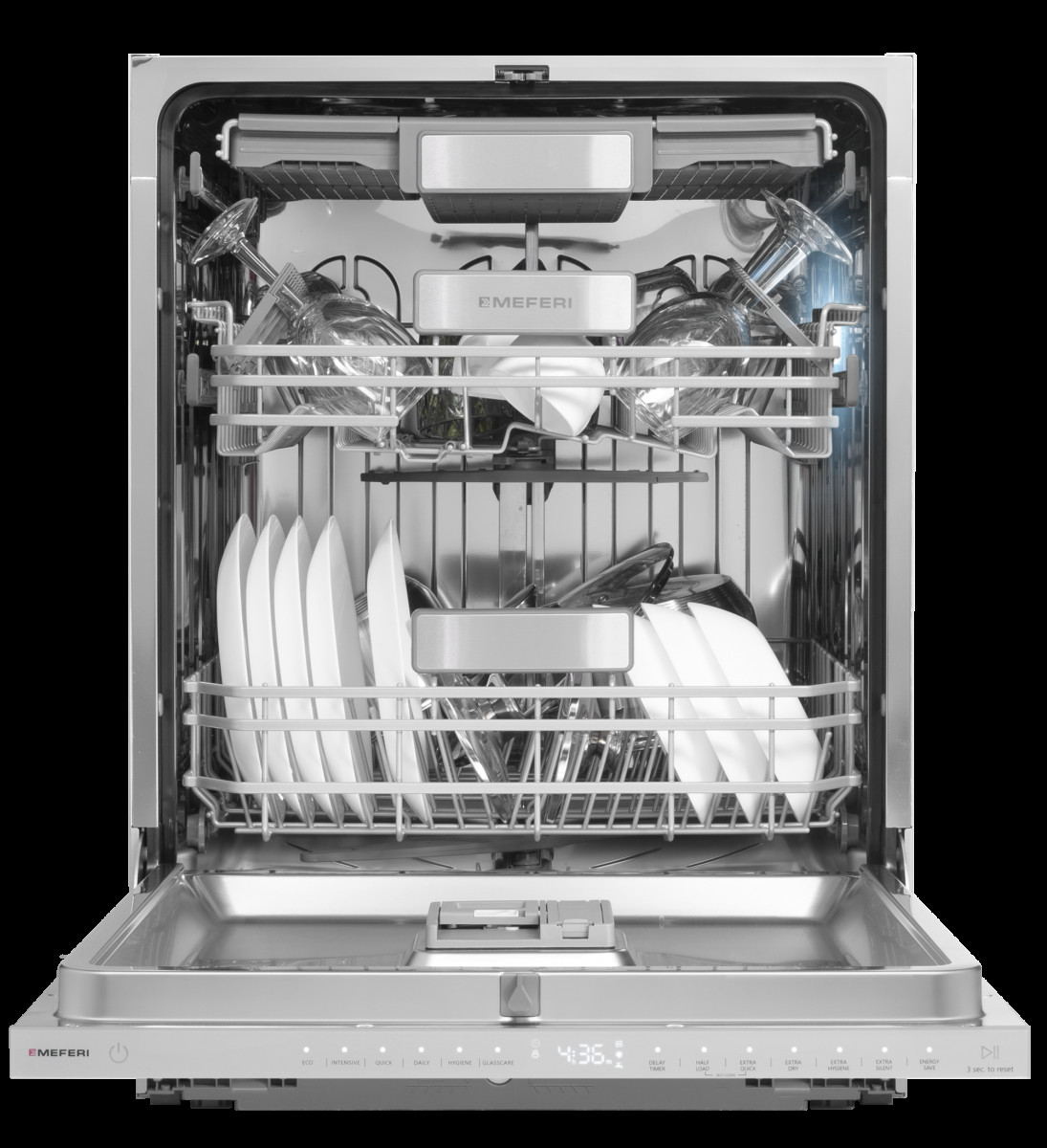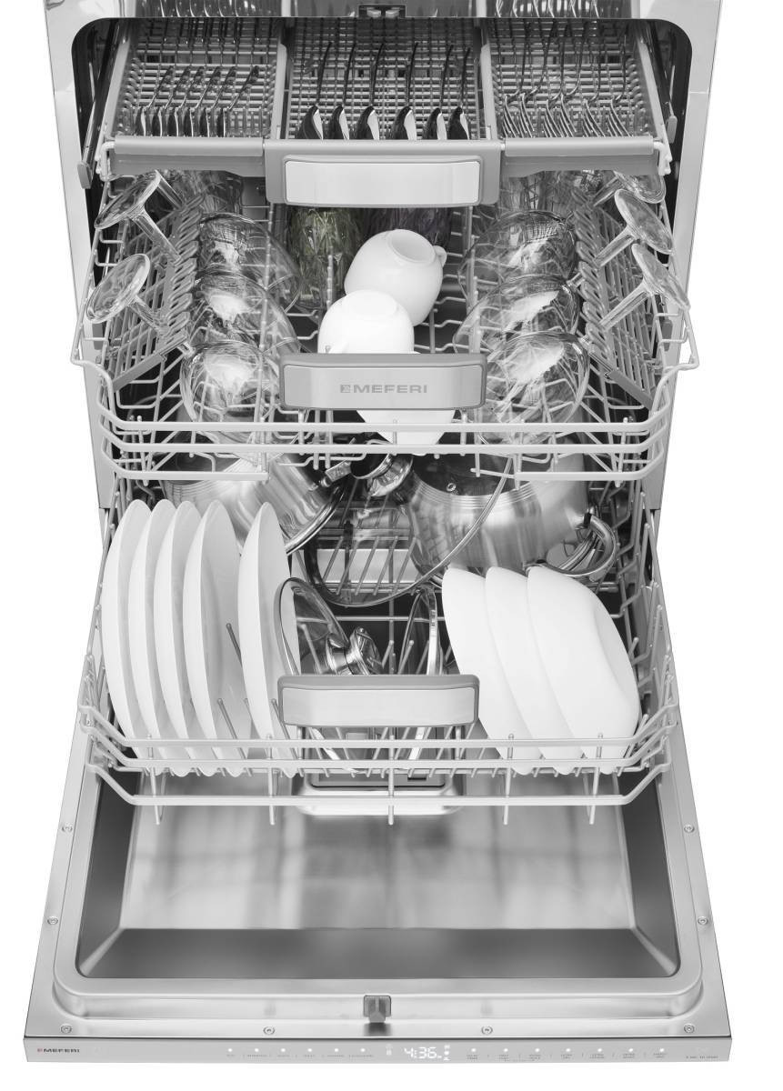 8 дополнительных функций: В посудомоечной машине MEFERI MDW6093 LUXE вы найдёте множество функций, которые помогут вам справиться с любыми загрязнениями на посуде. Например, с функцией «Экстра тихий режим» машина будет работать максимально незаметно, что особенно важно, когда кухня соединена с гостиной. А инновационный режим «Экстра гигиена» проводит стерилизацию посуды при температуре воды в 75 °C, уничтожая до 95 % бактерий и обеспечивая максимальную безопасность использования детской посуды.