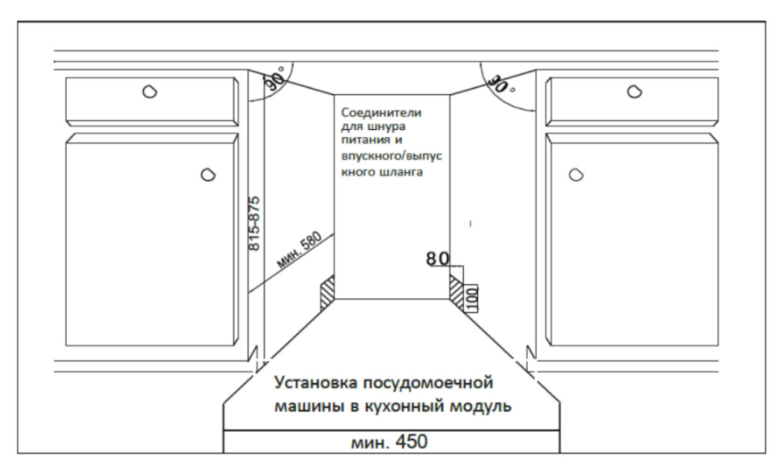 Размер ниши для встраивания (ШхГхВ), мм: 450х580х815-875