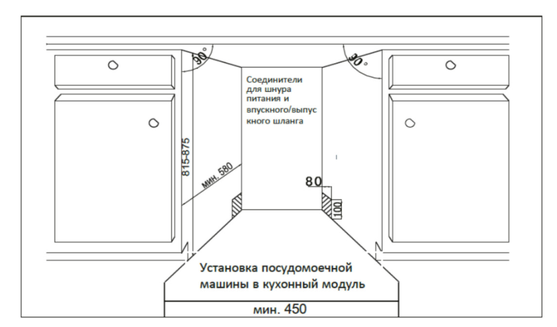 Размер ниши для встраивания (ШхГхВ), мм: 450х580х815-875