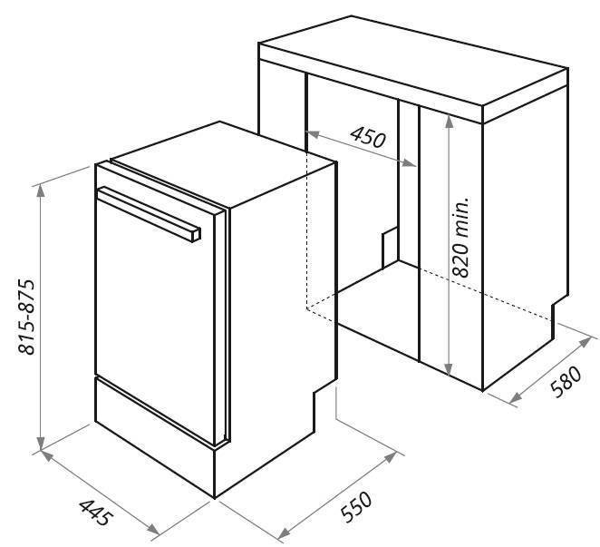 Полновстраиваемая посудомоечная машина.