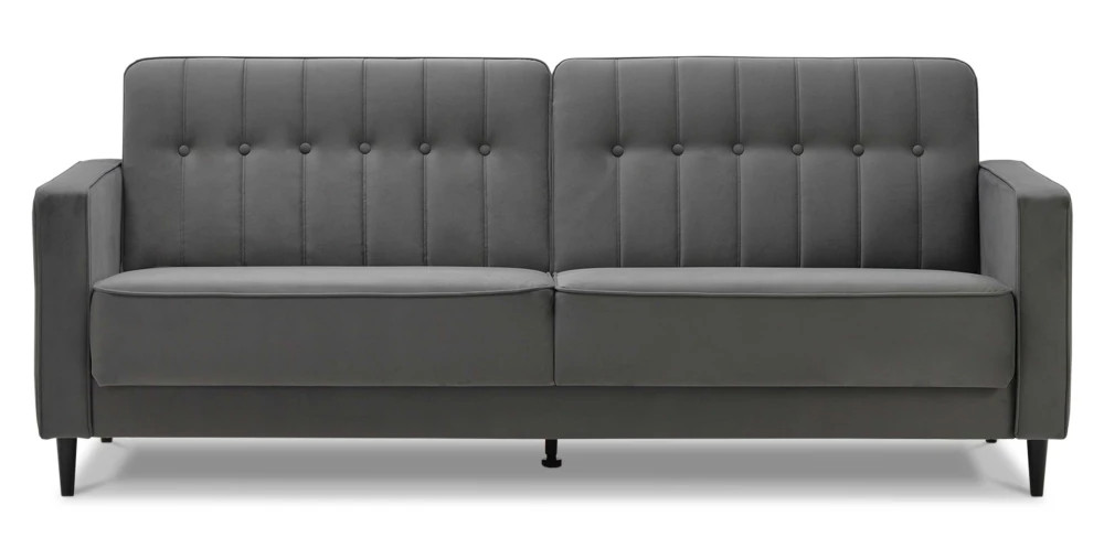 Клайд - современный диван на высоких деревянных ножках. Прямые формы и вертикальная стежка с декоративными элементами, в виде пуговиц, придают дивану сдержанность и элегантность.