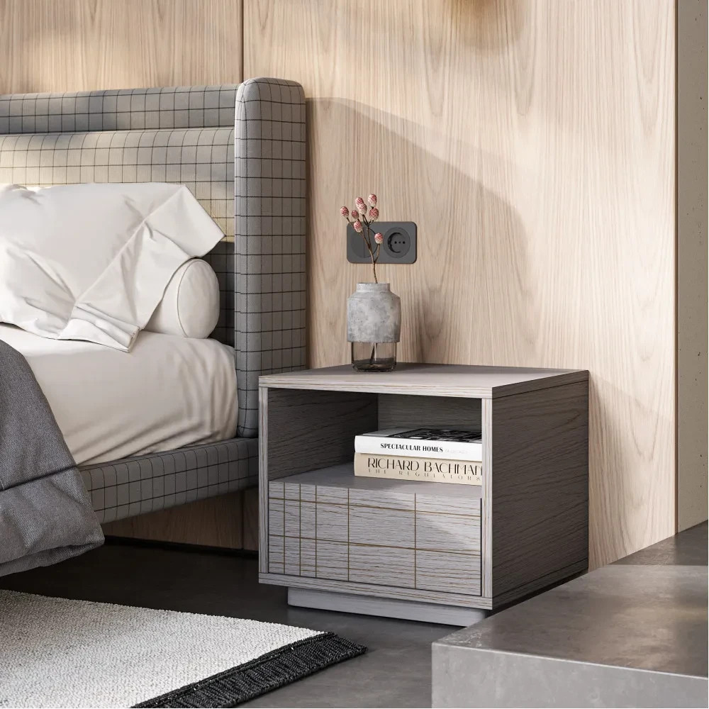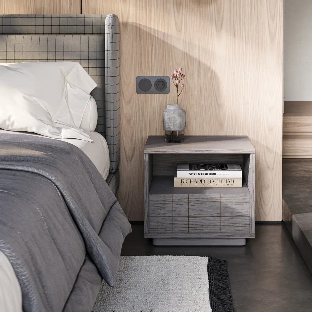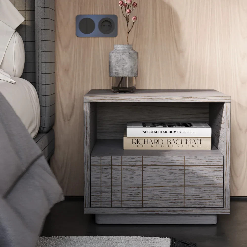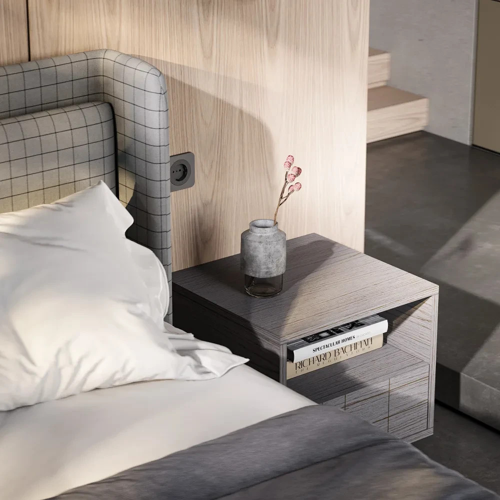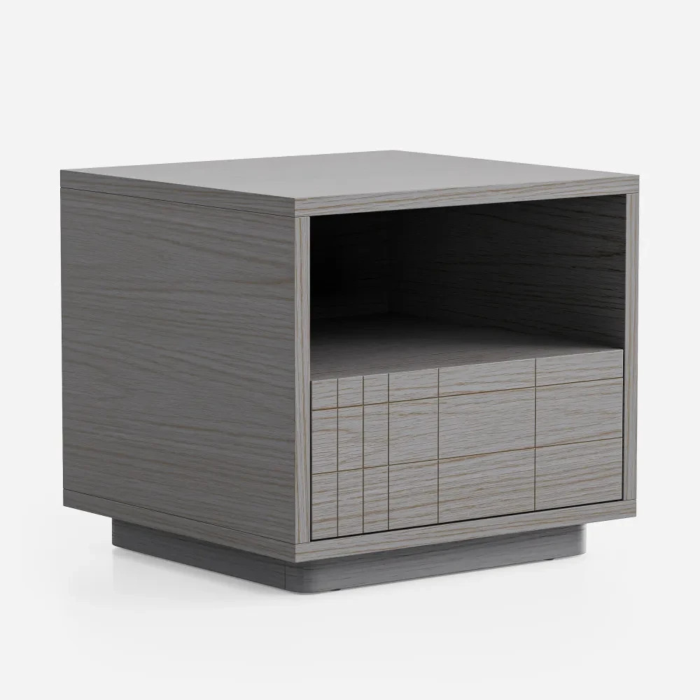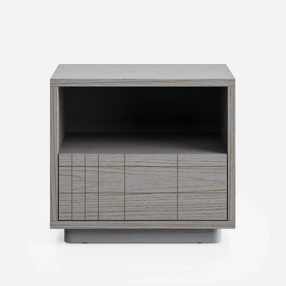 Прикроватная тумба Japandi выполнена из натурального шпона европейского дуба, ее образ объединяет минимализм, функциональность и элегантность скандинавского дизайна с утонченной простотой, характерной для японской эстетики.