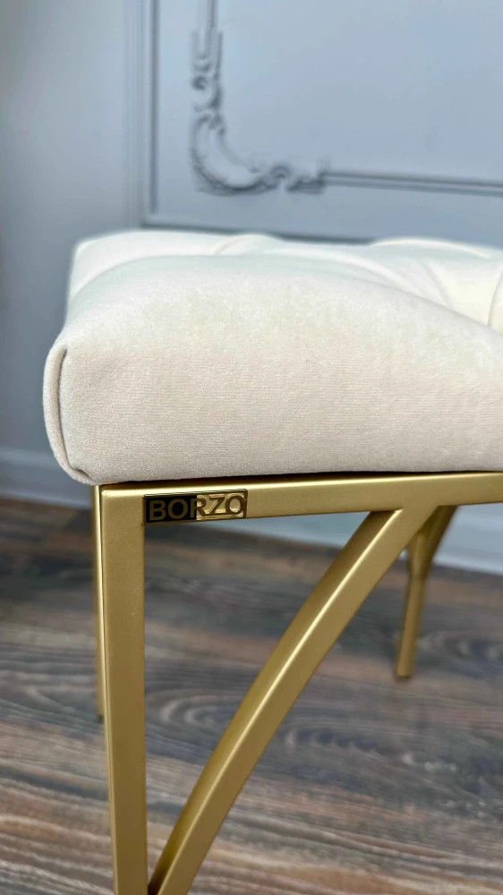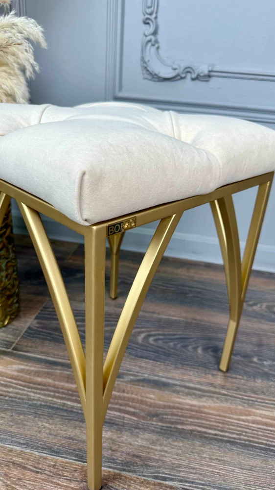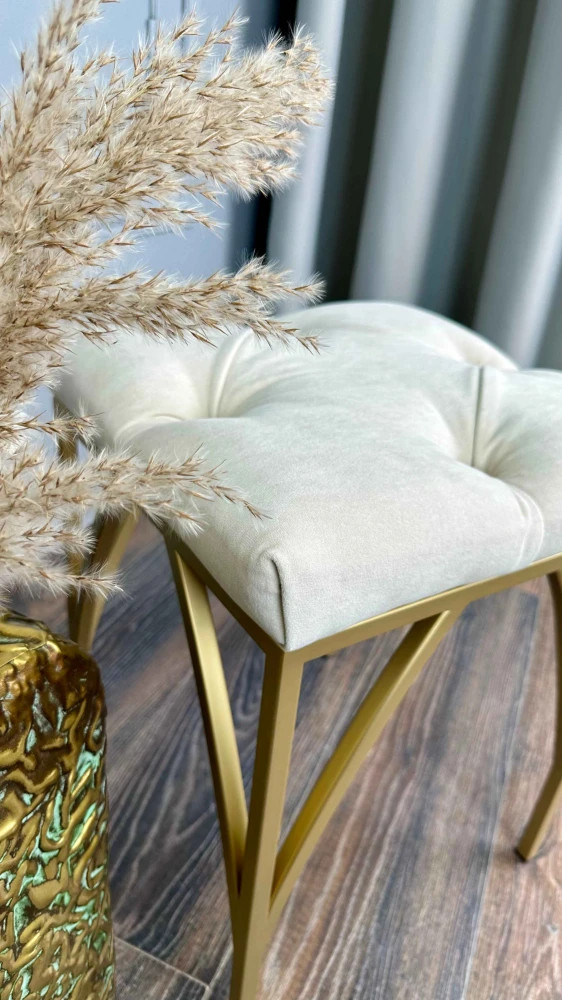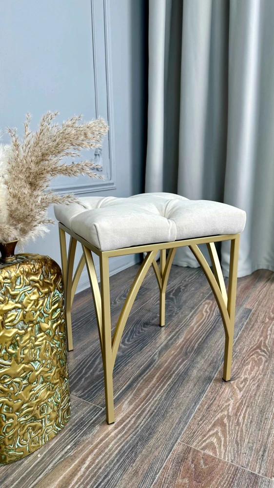 Элегантный акцент для современного интерьера. Пуф на изящных металлических ножках отличается мягким сиденьем с каретной стяжкой и лаконичным силуэтом. Идеален для прихожей, спальни или будуара.