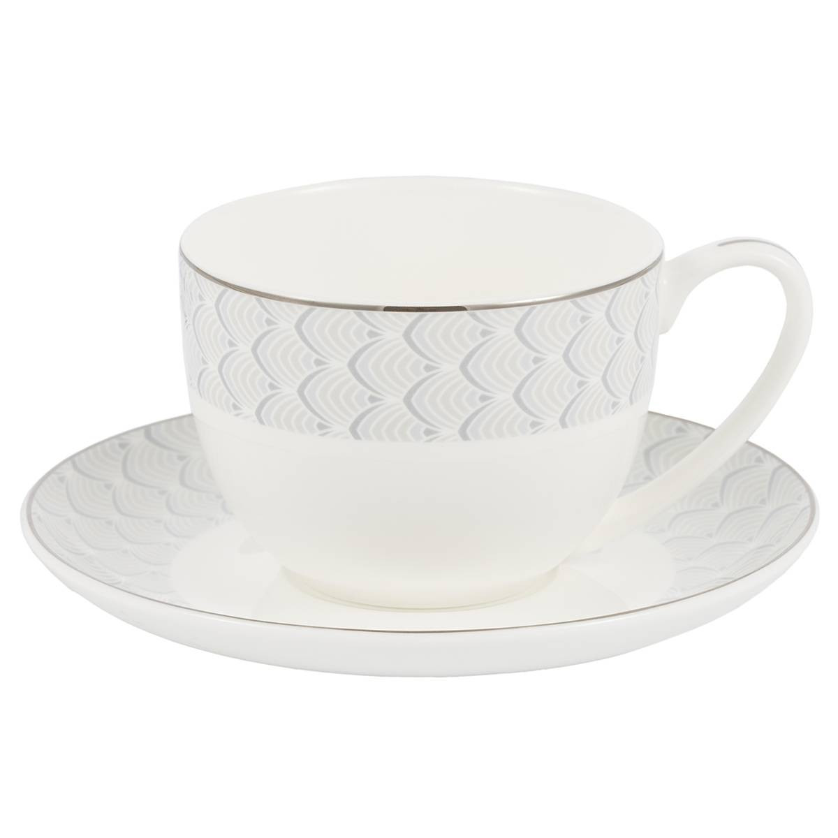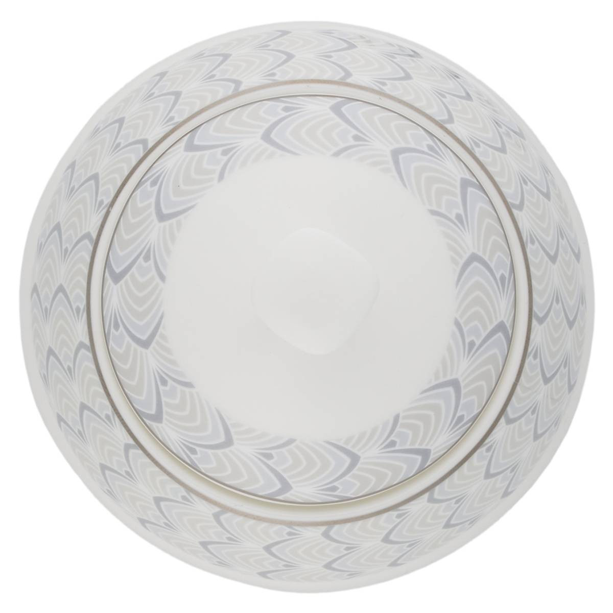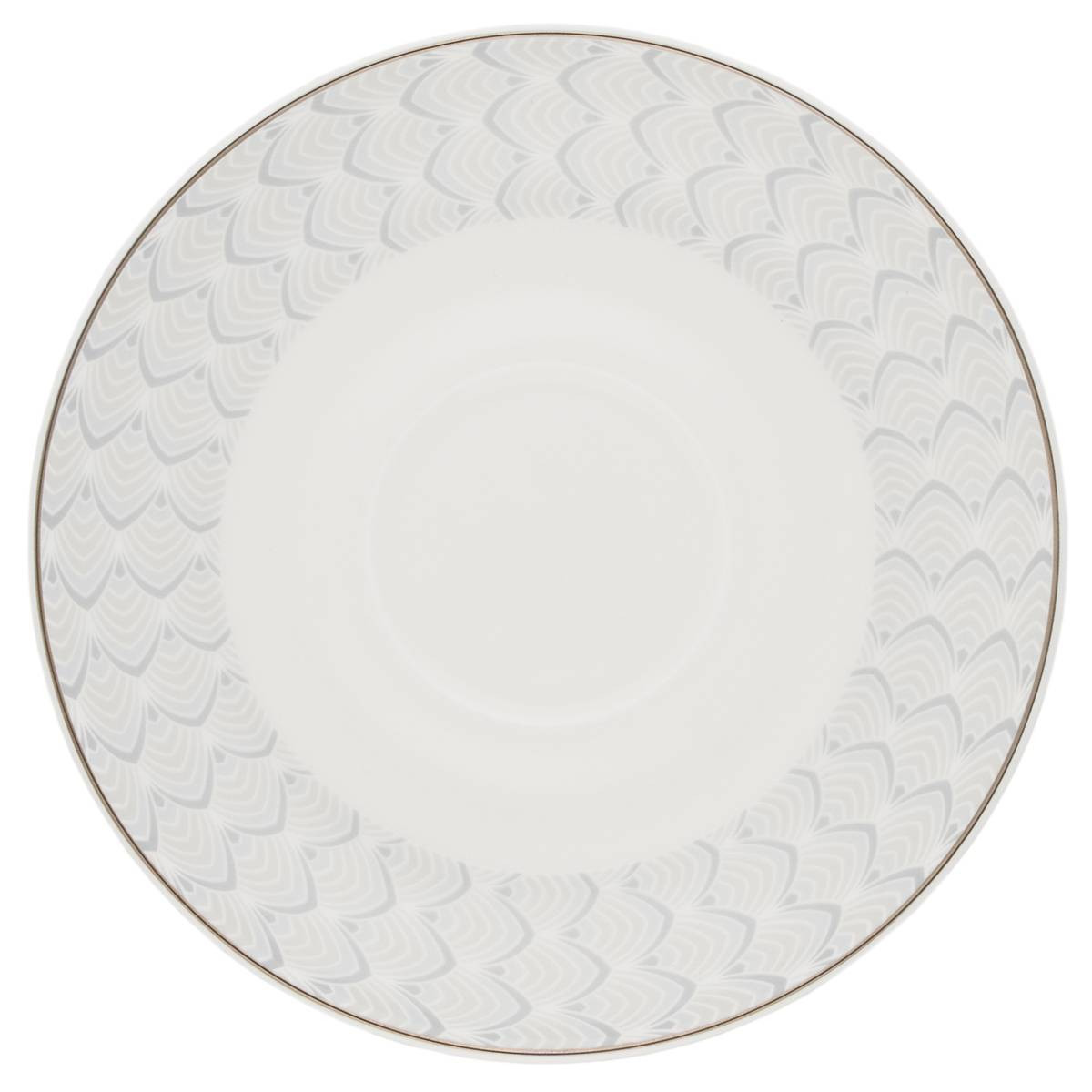 Сервиз Gipfel Caroline выполнен в классическом стиле: белоснежную поверхность украшает по бортику изящный рельефный геометрический орнамент в молочно-серых тонах. Серебристый кант по краю дополняет композицию. Утонченные формы, элегантный декор и глянцевая поверхность делают посуду коллекции Caroline великолепным украшением стола.
