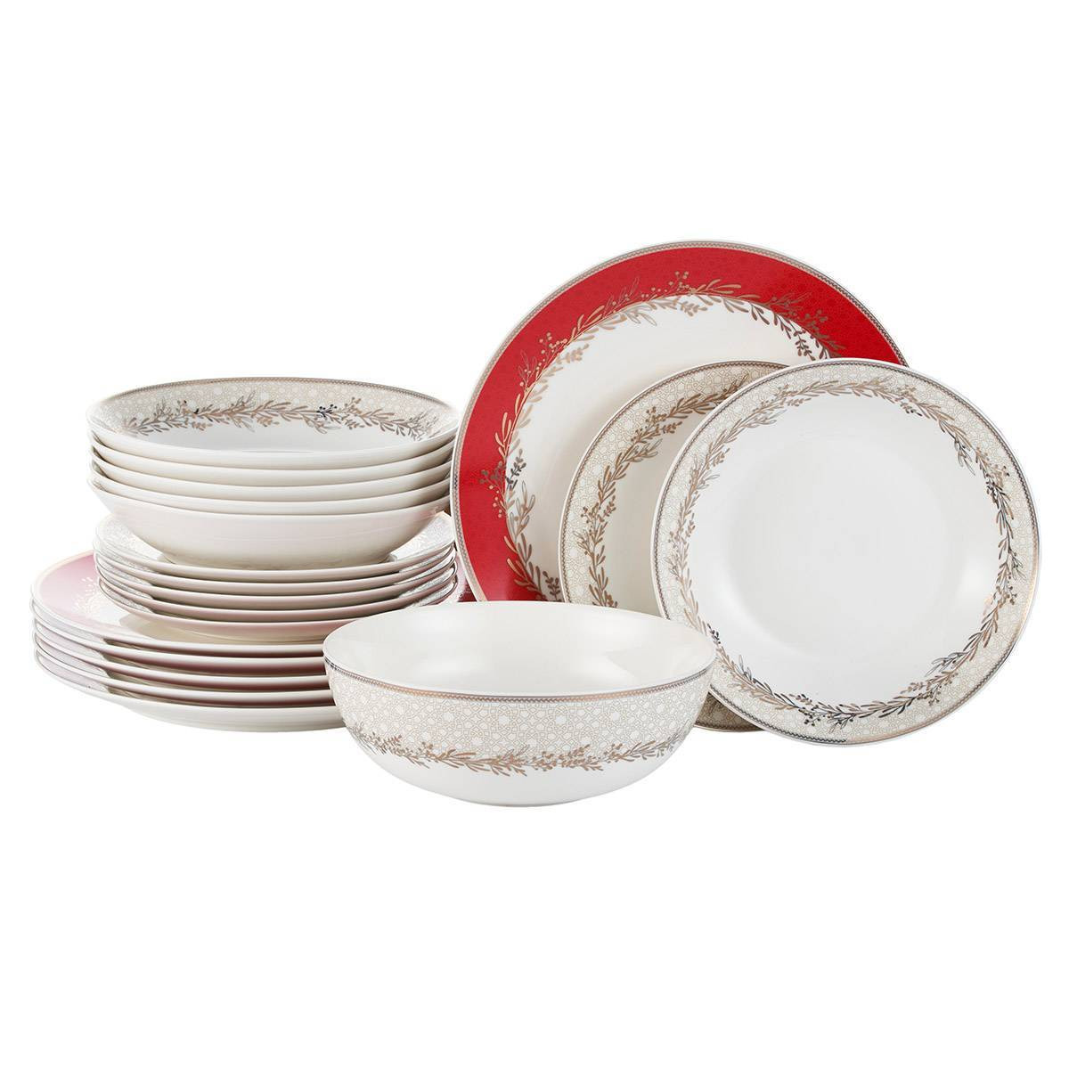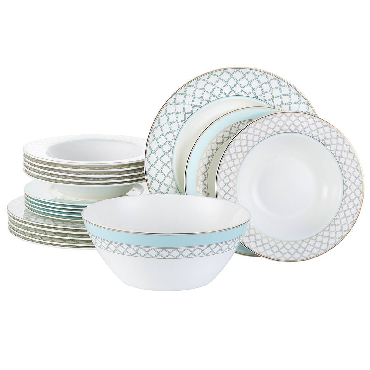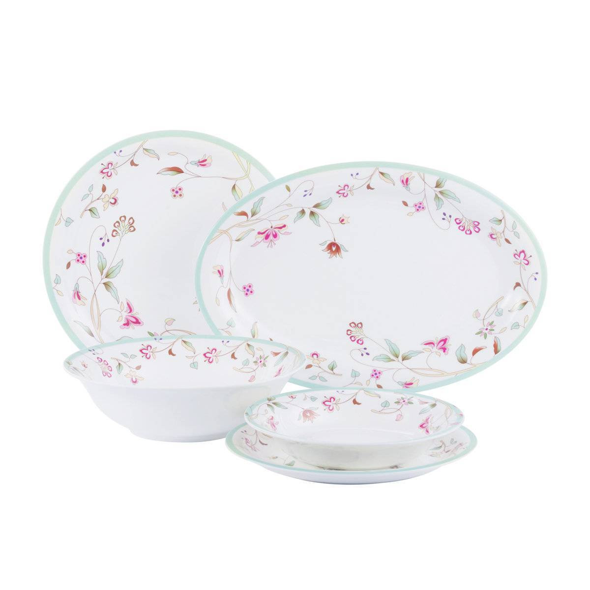 Сервиз столовый Gipfel VERDE 42201 21 предмет на 6 персон: тарелка обеденная 27см, 6шт, тарелка закусочная 22см, 6шт., тарелка суповая 20см, 6шт., овальное блюдо, 2шт., салатник 23см, 1шт. Материал: костяной фарфор.