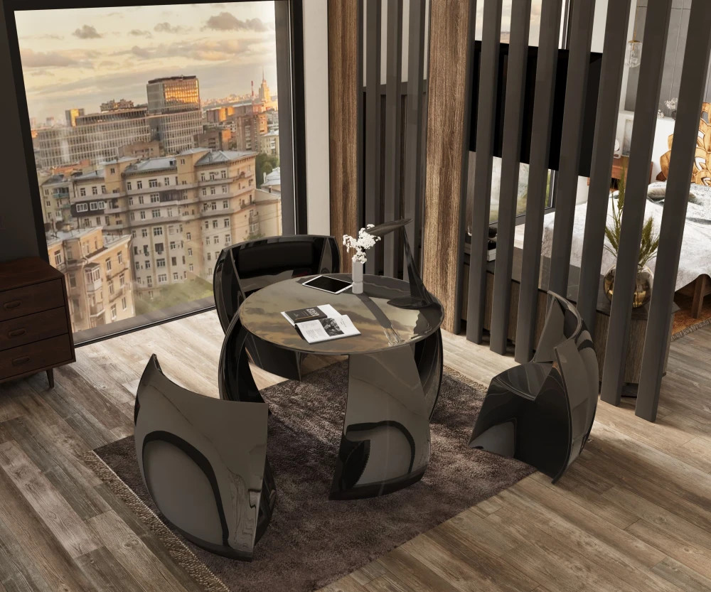 * Эргономичный дизайн позволяет использовать PALLA как декоративный стол в собранном виде, так и как стол для переговоров с тремя стульями в разобранном.
