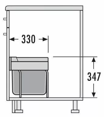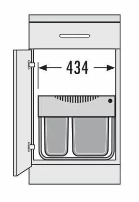 Выдвижная система с 3 ведрами 12 и 2x8 литров, для установки в распашной шкаф шириной 500 и 600 мм. Стационарная крышка с креплением ко дну шкафа.