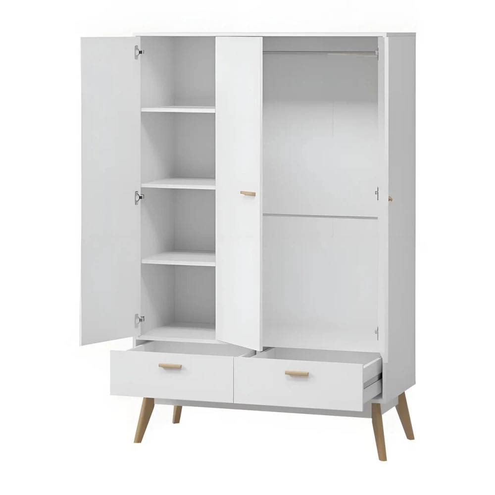 В скандинавском стиле шкаф придаст вашему интерьеру особый шарм. Белый матовый фасад создает ощущение света и простора, а корпус из дуба вотан придает шкафу естественную и уютную атмосферу.