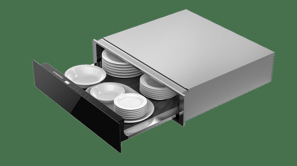 Устройство изготавливается из качественной нержавеющей стали и устанавливается в кухонную мебель. Благодаря компактным габаритам владелец может размещать подогреватель рядом с другой встраиваемой техникой бренда. Технология Push позволяет открывать дверцу легким касанием руки.