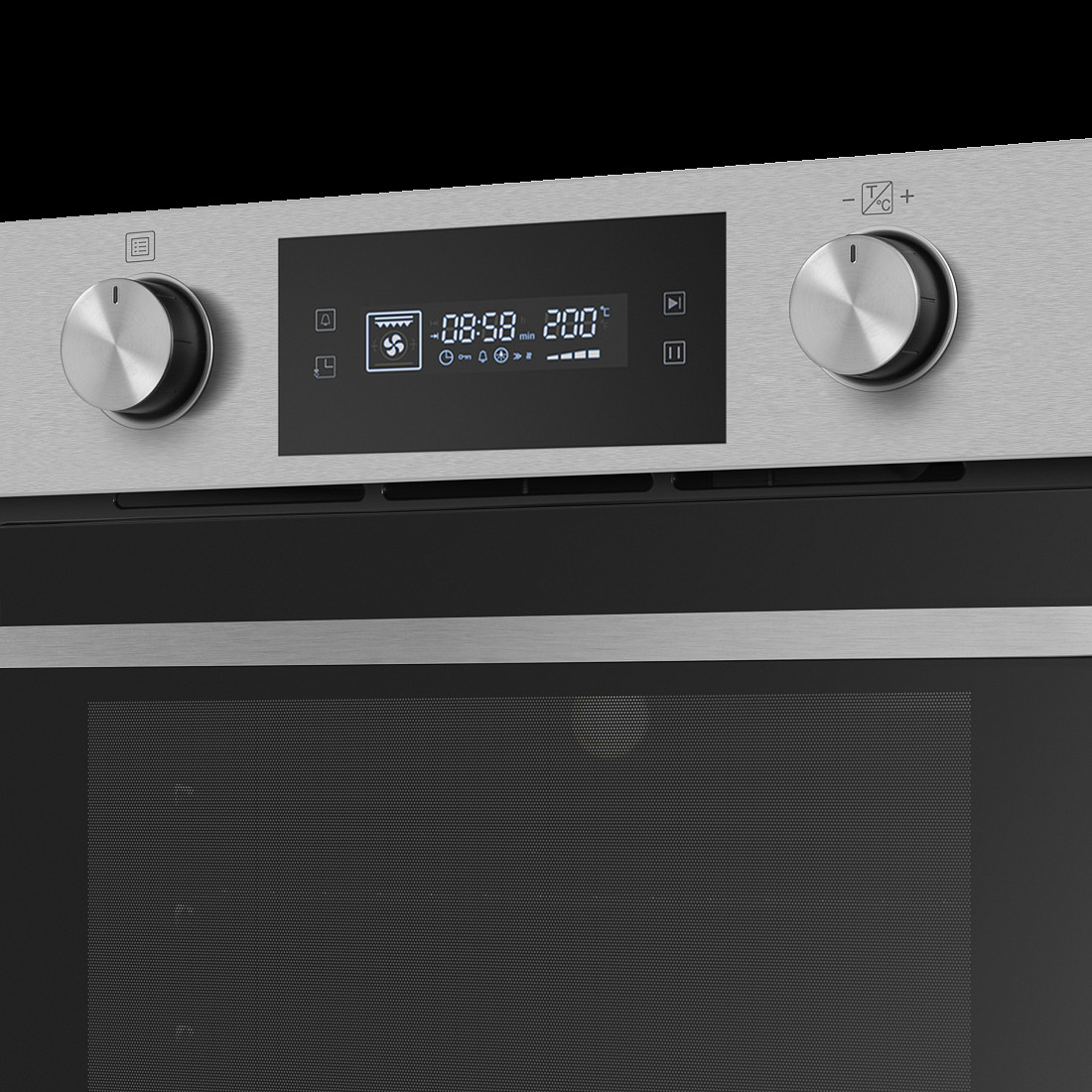 Поворотные ручки PUSH PULL в сочетании с современным сенсорным управлением обеспечивают комфортное и наиболее точную регулировку параметров приготовления. Большой цифровой дисплей духового шкафа отображает всю необходимую информацию.