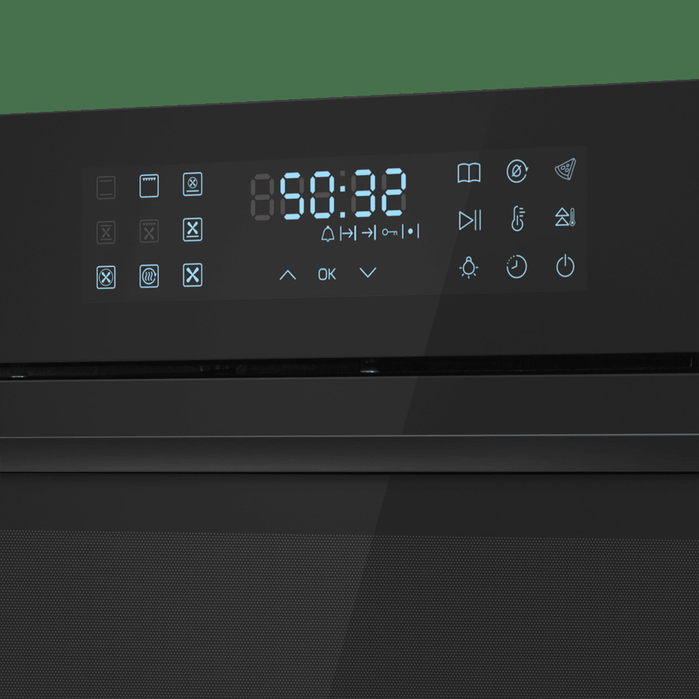 Сенсорный панель FULL TOUCH с дисплеем интуитивно понятен и удобен в использовании. Позволяет выбирать режимы нагрева, температуру, длительность готовки, устанавливать таймер, включать функцию быстрого нагрева и блокировать панель управления.