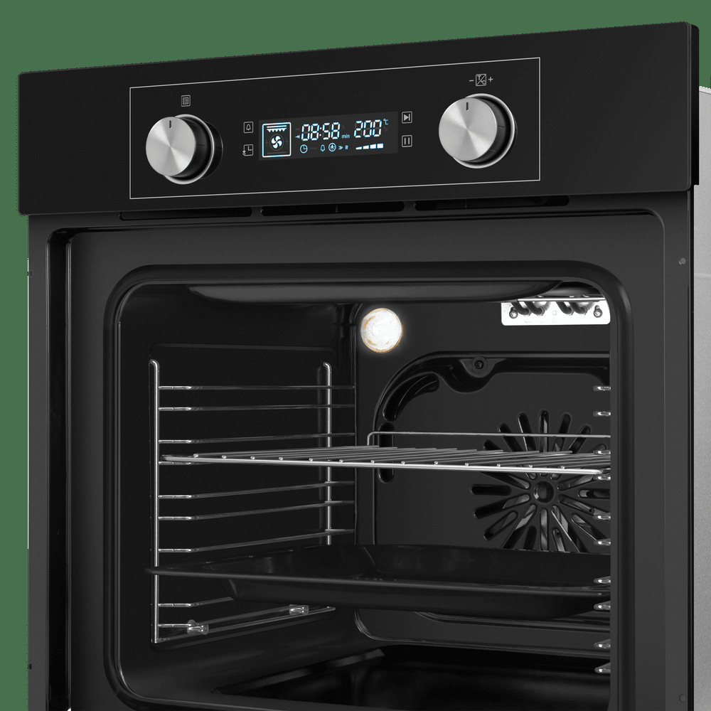 Благодаря конвекции вы можете установить противень на любом уровне и получить равномерное пропекание, хрустящую корочку. Тепло распределяется по всему объёму духового шкафа, обеспечивая равномерное приготовление блюд.