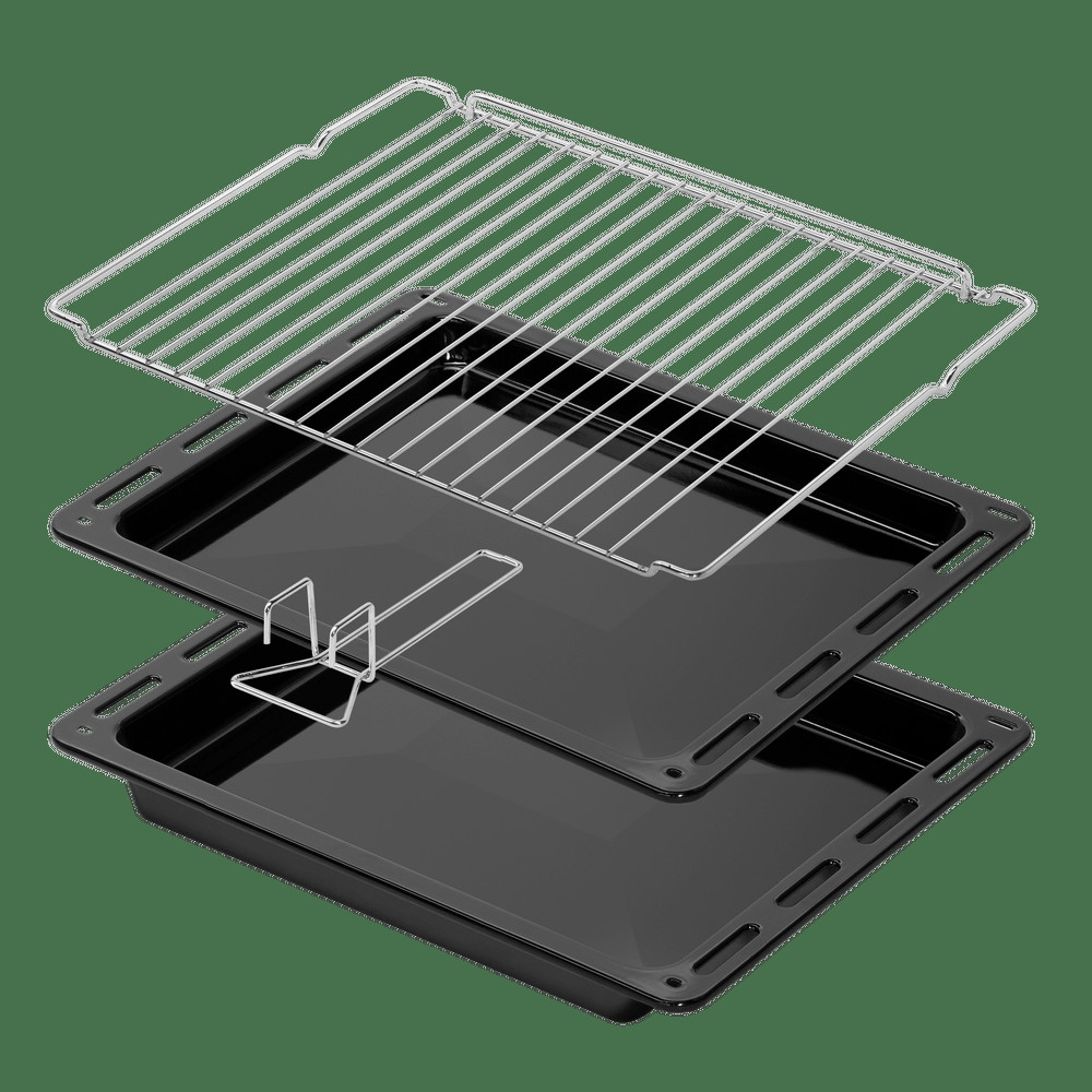В комплекте: стандартный противень, глубокий противень, хромированная решетка, хромированные телескопических направляющие, хромированные направляющие, прихват